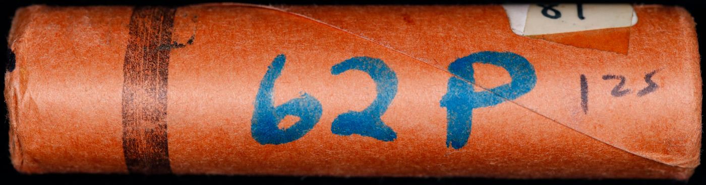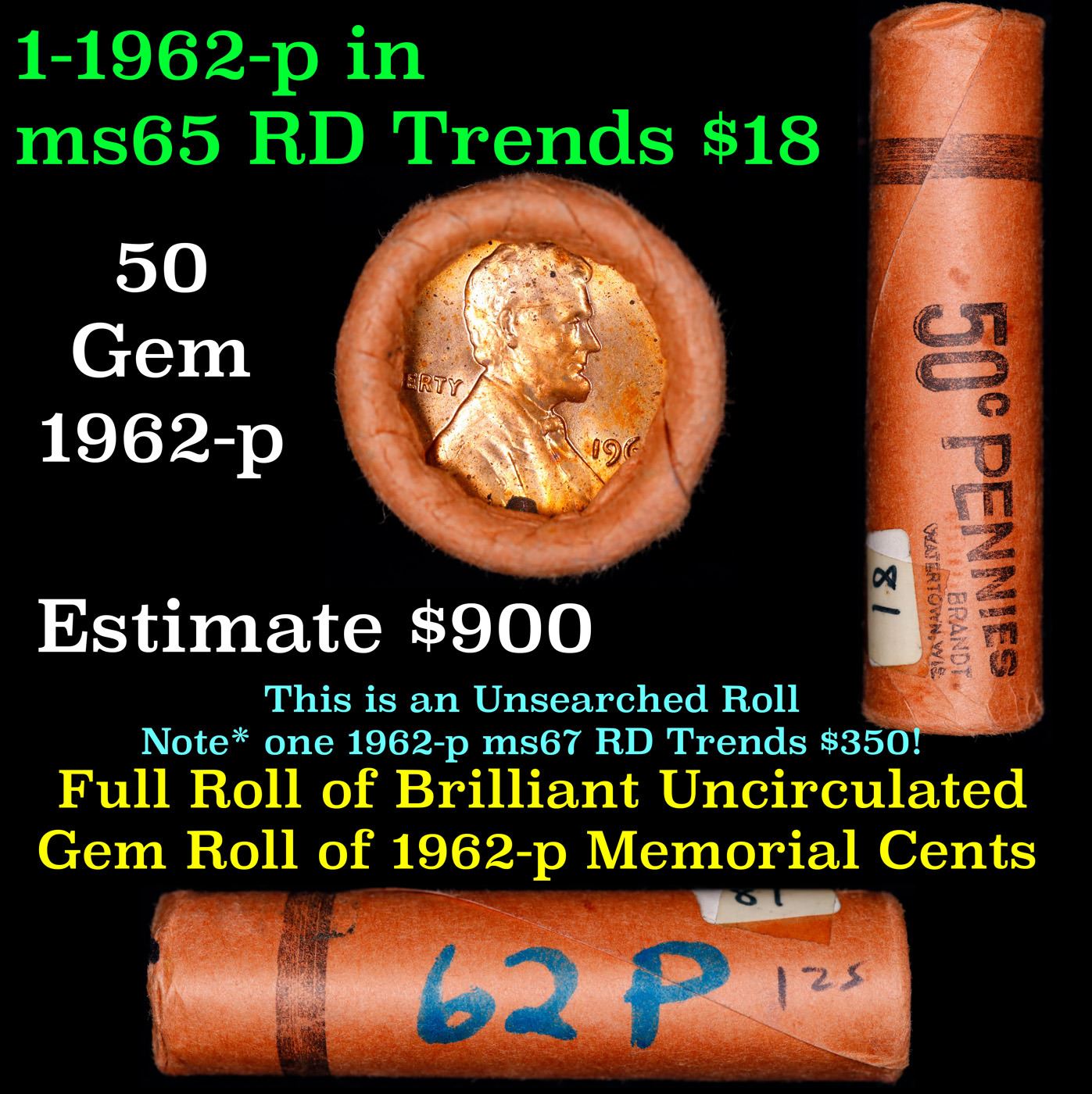 Shotgun Lincoln 1c roll, 1962-p 50 pcs Brandt Wrapper . A terrific Shotgun roll of Lincoln cents. All coins appear to be cherry red. Trends ms65 rd $18
