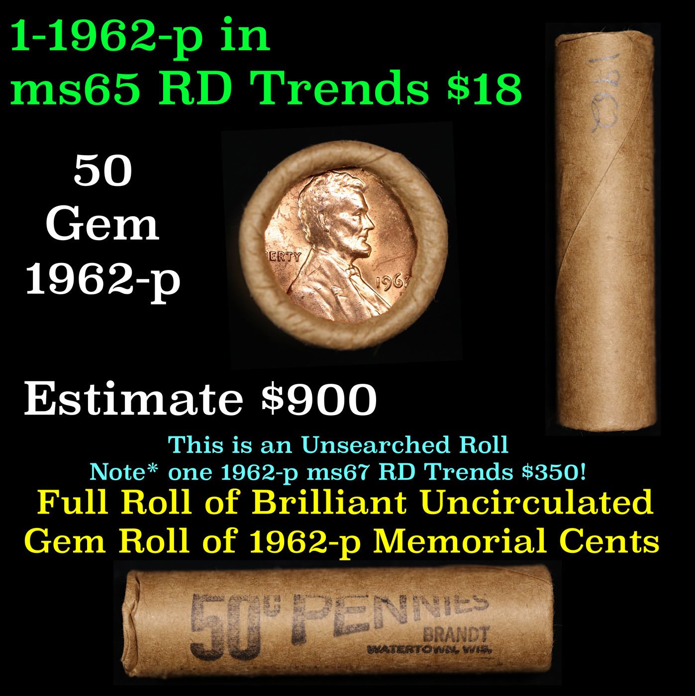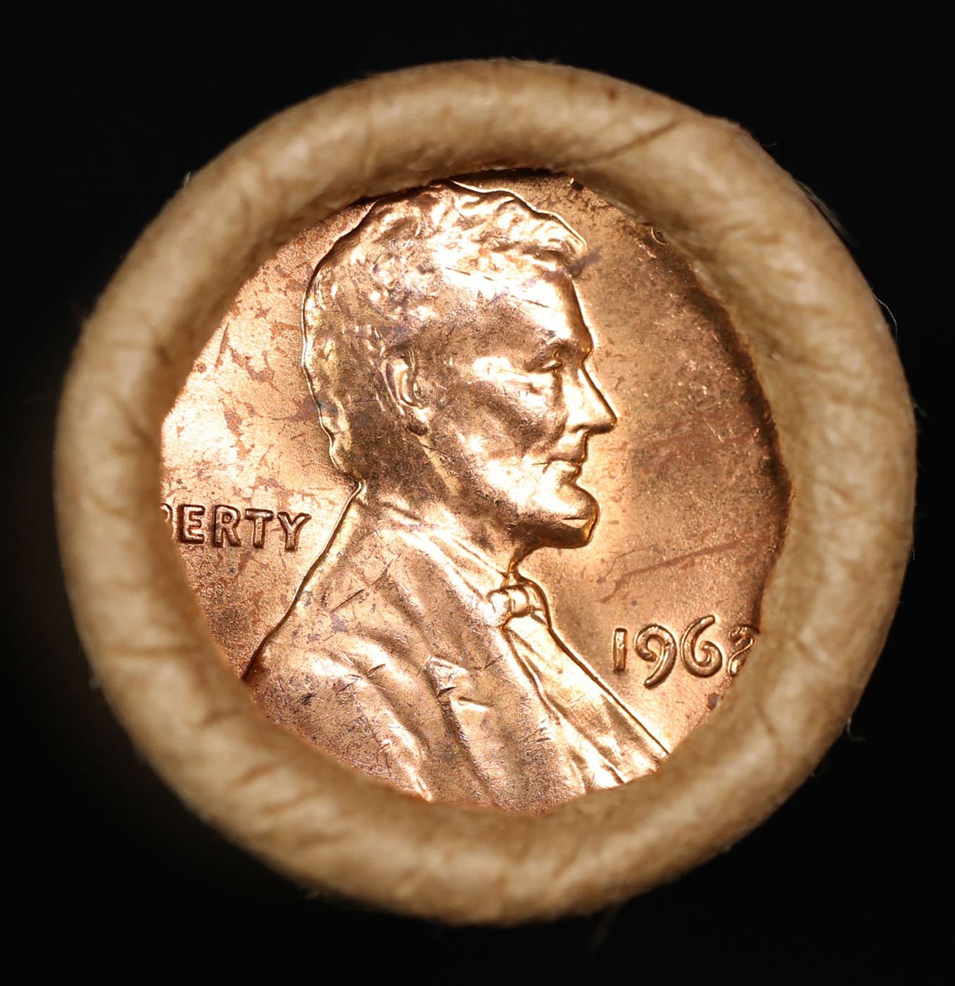Shotgun Lincoln 1c roll, 1962-p 50 pcs Brandt Wrapper.. A terrific Shotgun roll of Lincoln cents. All coins appear to be cherry red. Trends ms65 rd $18