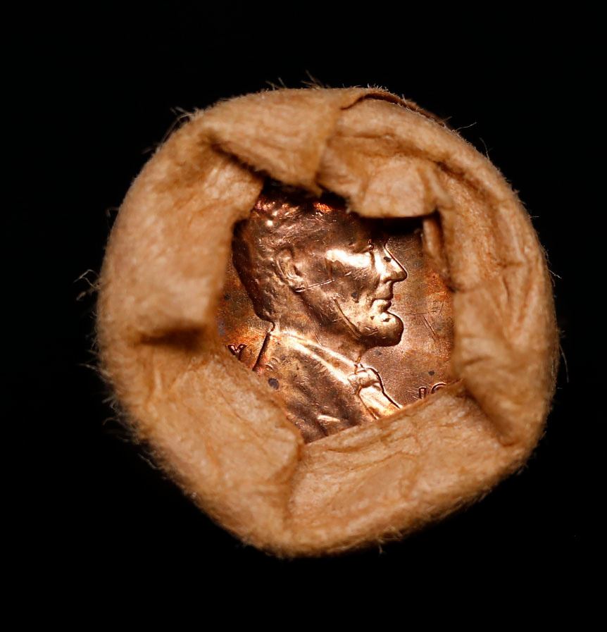 Shotgun Lincoln 1c roll, 1962-p 50 pcs Standard Johnson Wrapper.. A terrific Shotgun roll of Lincoln cents. Most if not all coin should be cherry red.