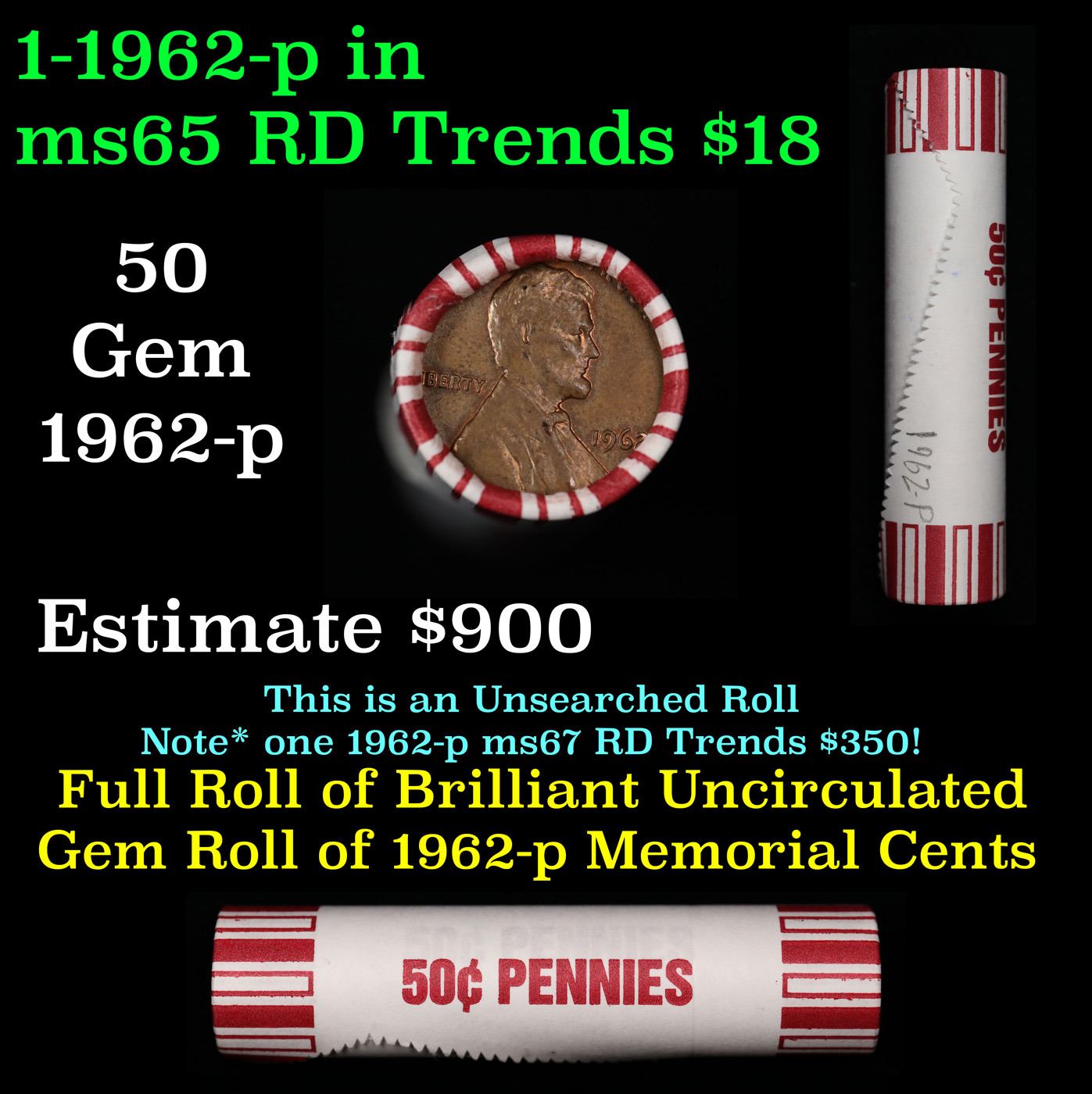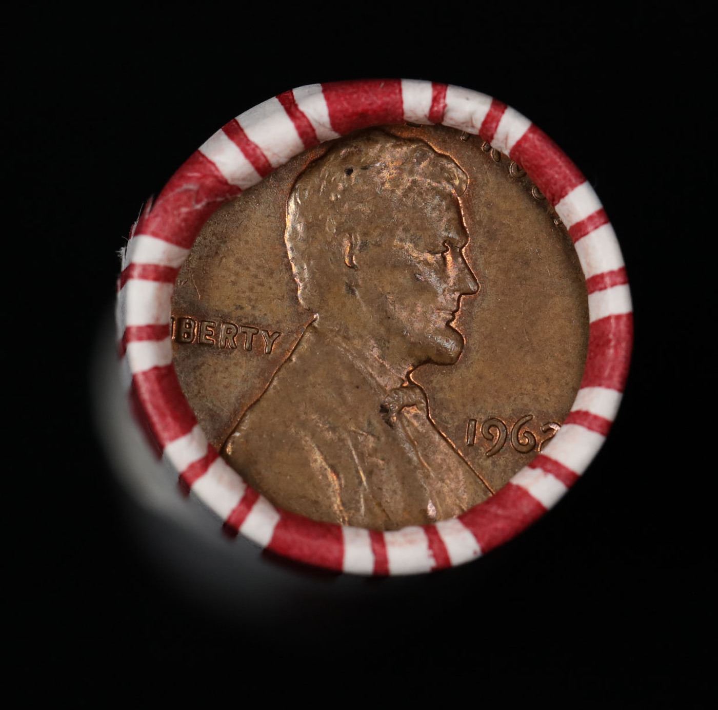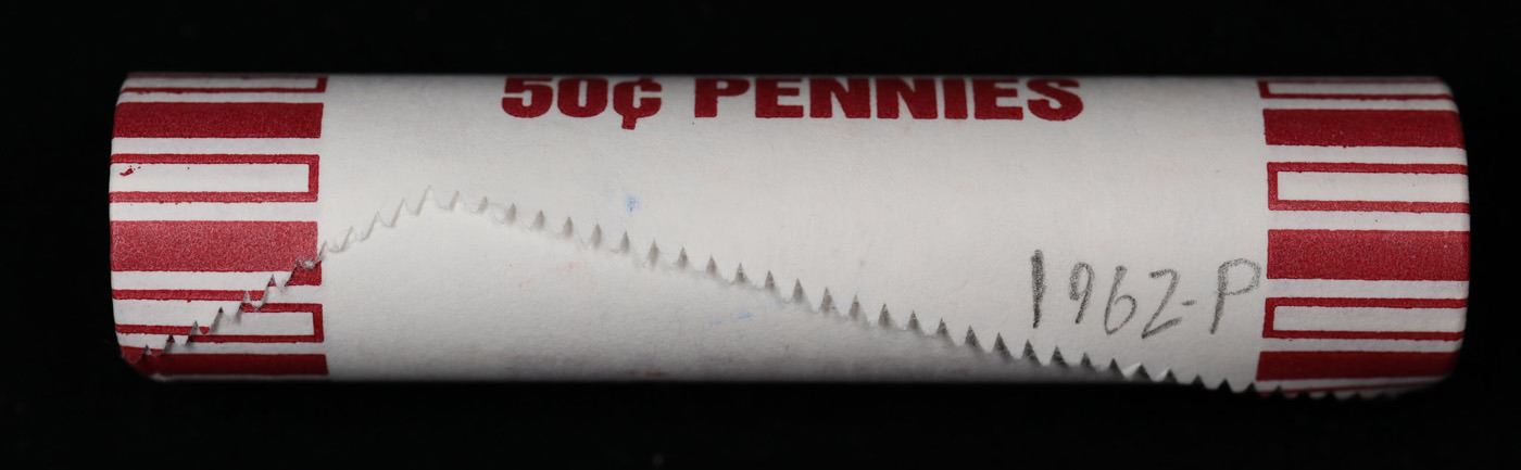 Shotgun Lincoln 1c roll, 1962-p 50 pcs Steel-Strong Wrapper.. A terrific Shotgun roll of Lincoln cents. Most if not all coin should be cherry red.