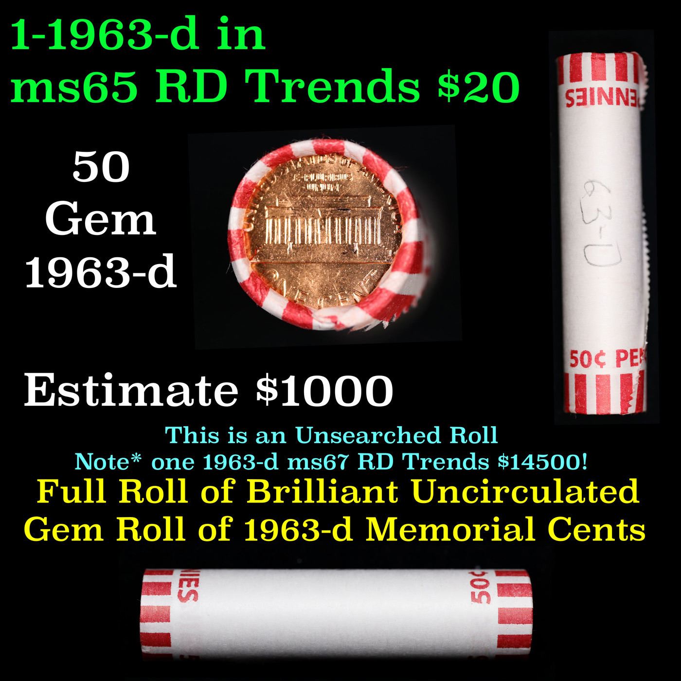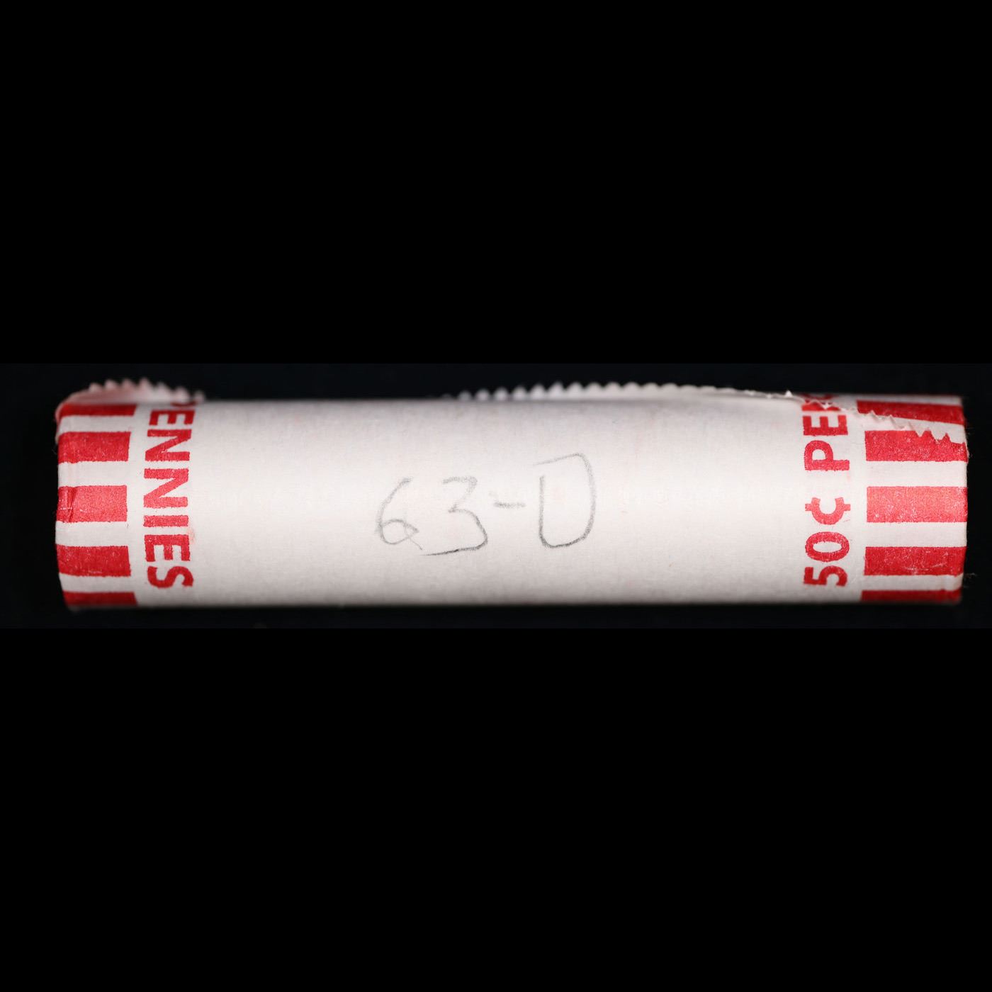Shotgun Lincoln 1c roll, 1963-d 50 pcs Bank Wrapper.. A terrific Shotgun roll of Lincoln cents. Most if not all coin should be cherry red.