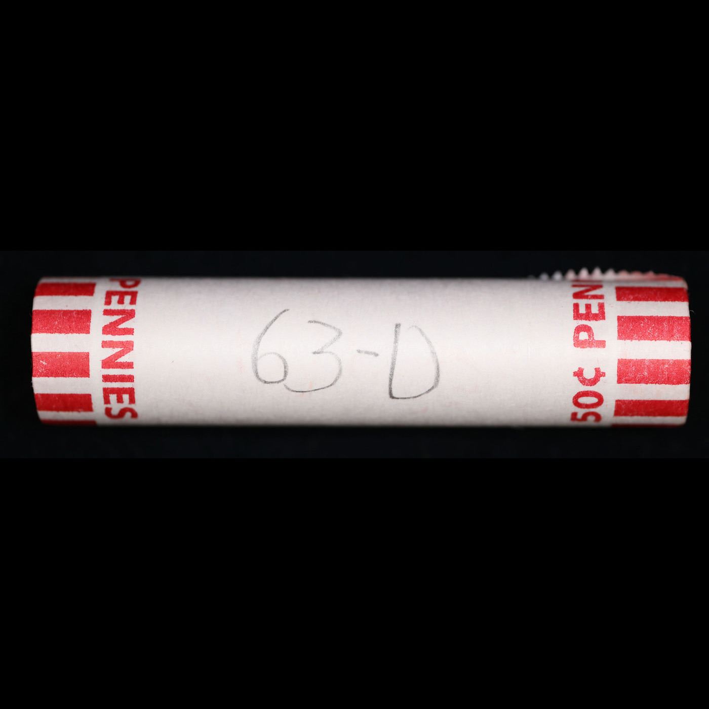 Shotgun Lincoln 1c roll, 1963-d 50 pcs Bank Wrapper.. A terrific Shotgun roll of Lincoln cents. Most if not all coin should be cherry red.