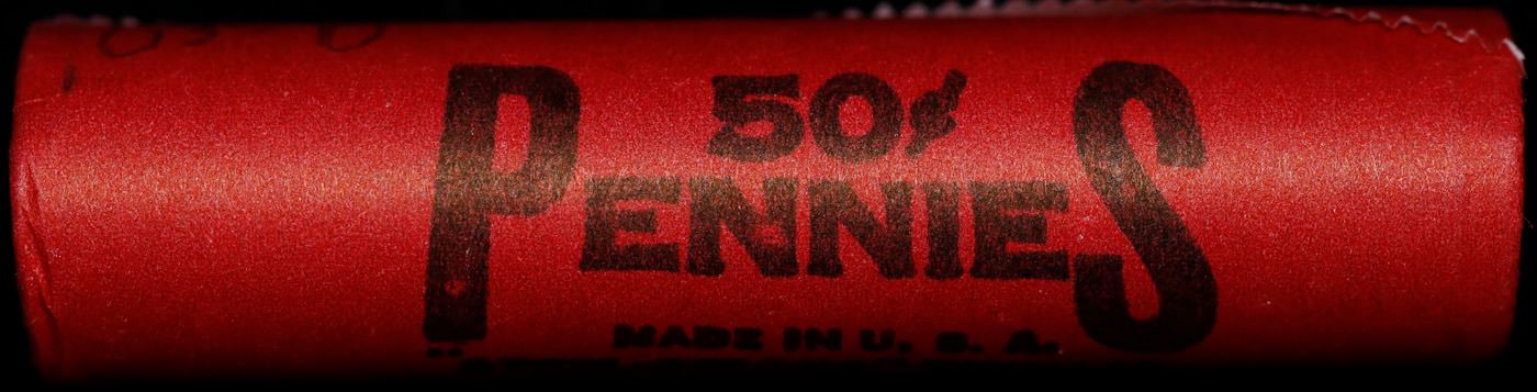 Shotgun Lincoln 1c roll, 1963-d 50 pcs Original Steel-Strong Wrapper.. A terrific Shotgun roll of Lincoln cents. Most if not all coin should be cherry red.