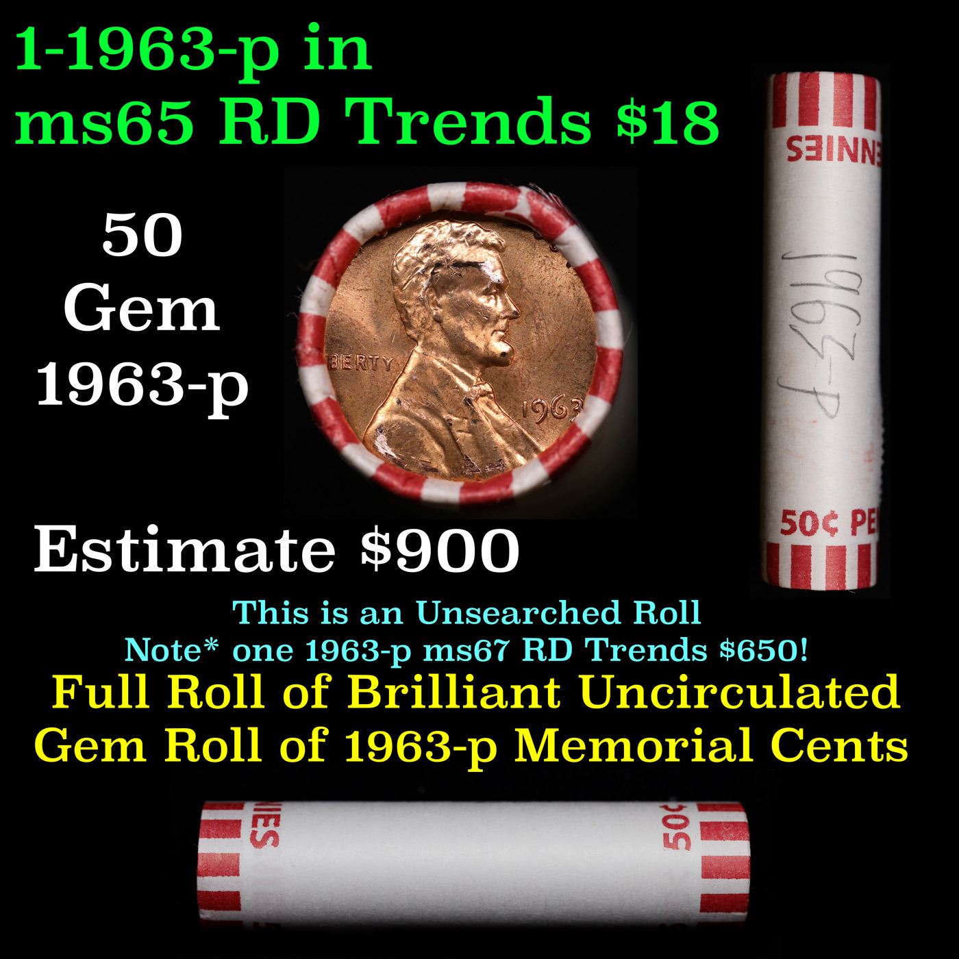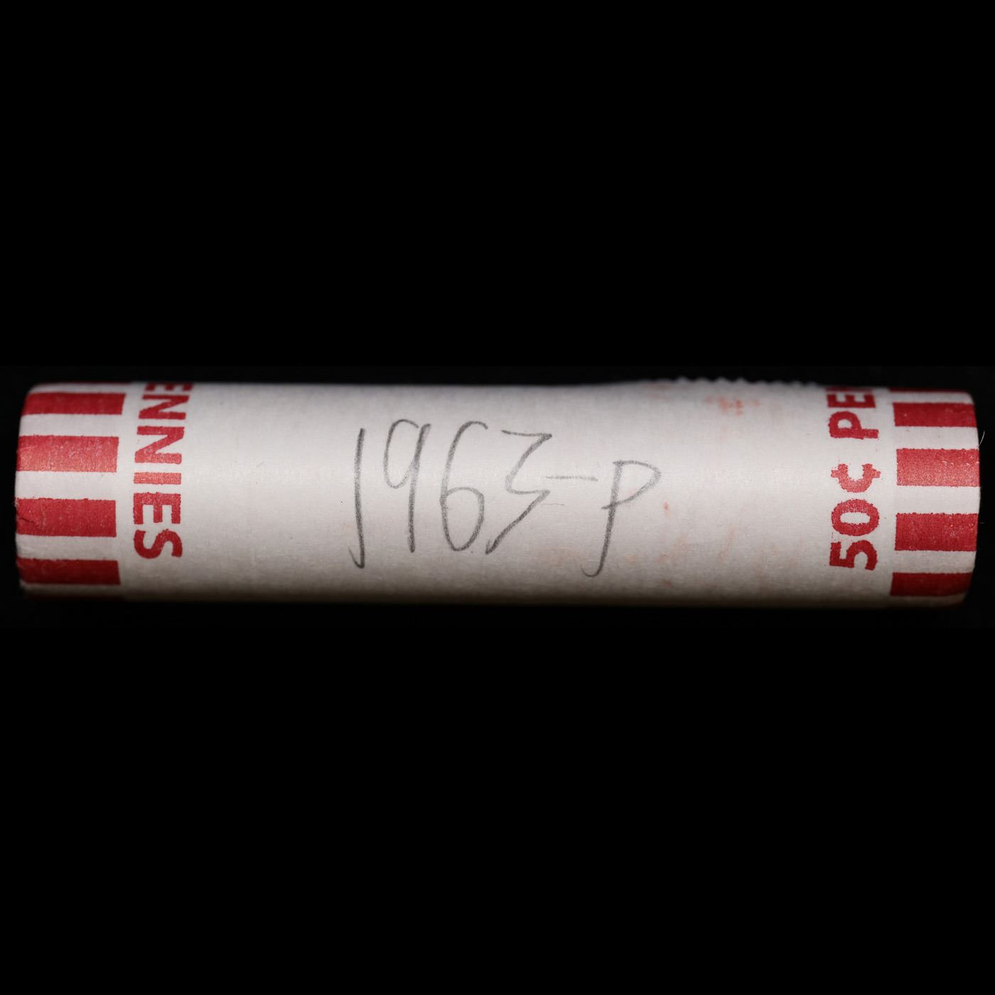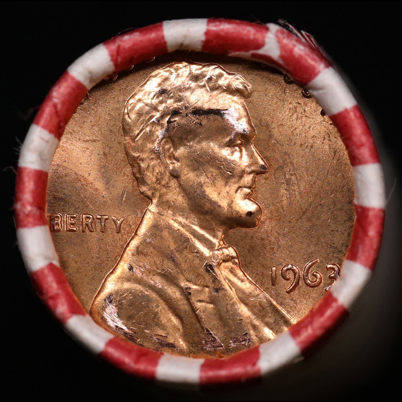 Shotgun Lincoln 1c roll, 1963-p 50 pcs Bank Wrapper.. A terrific Shotgun roll of Lincoln cents. Most if not all coin should be cherry red.