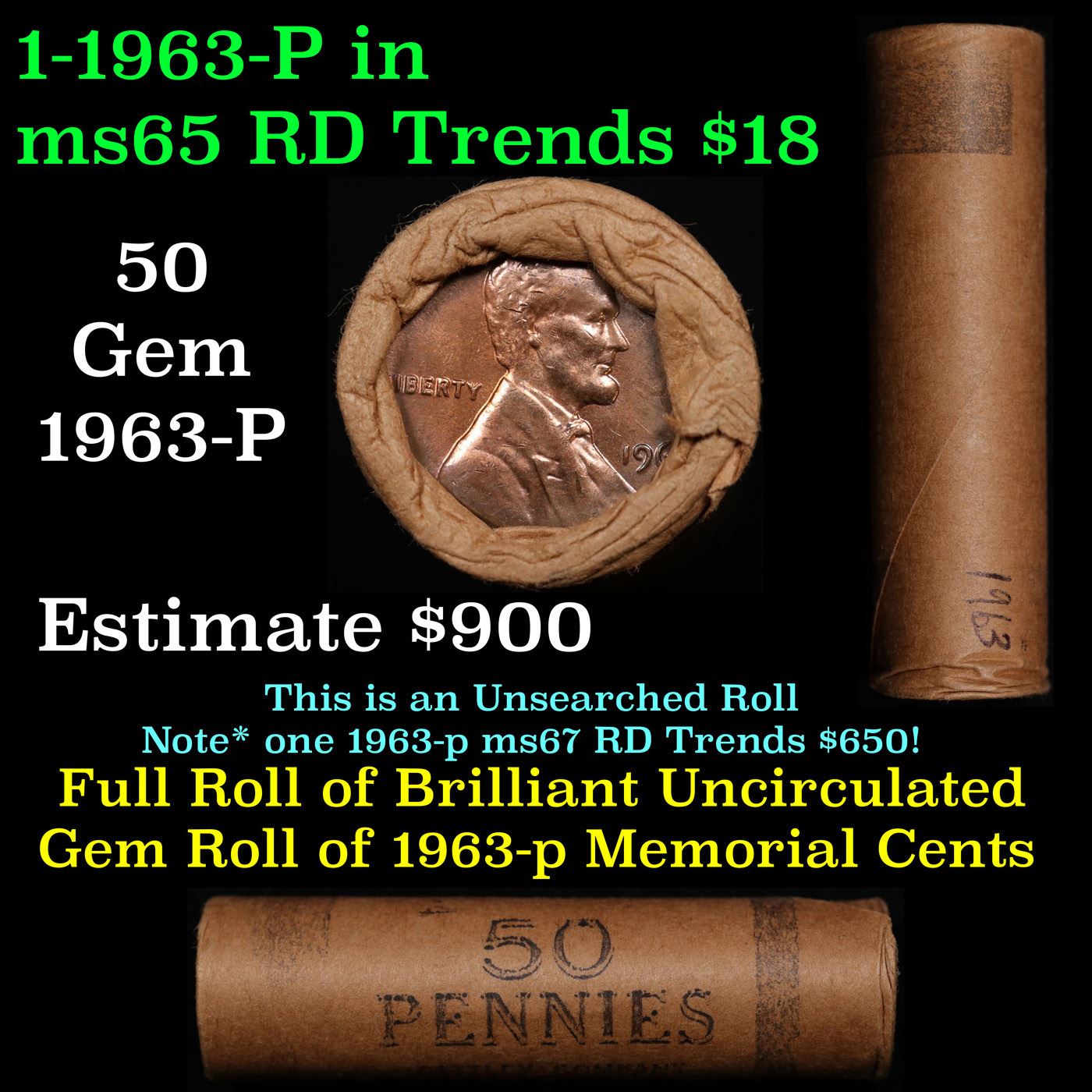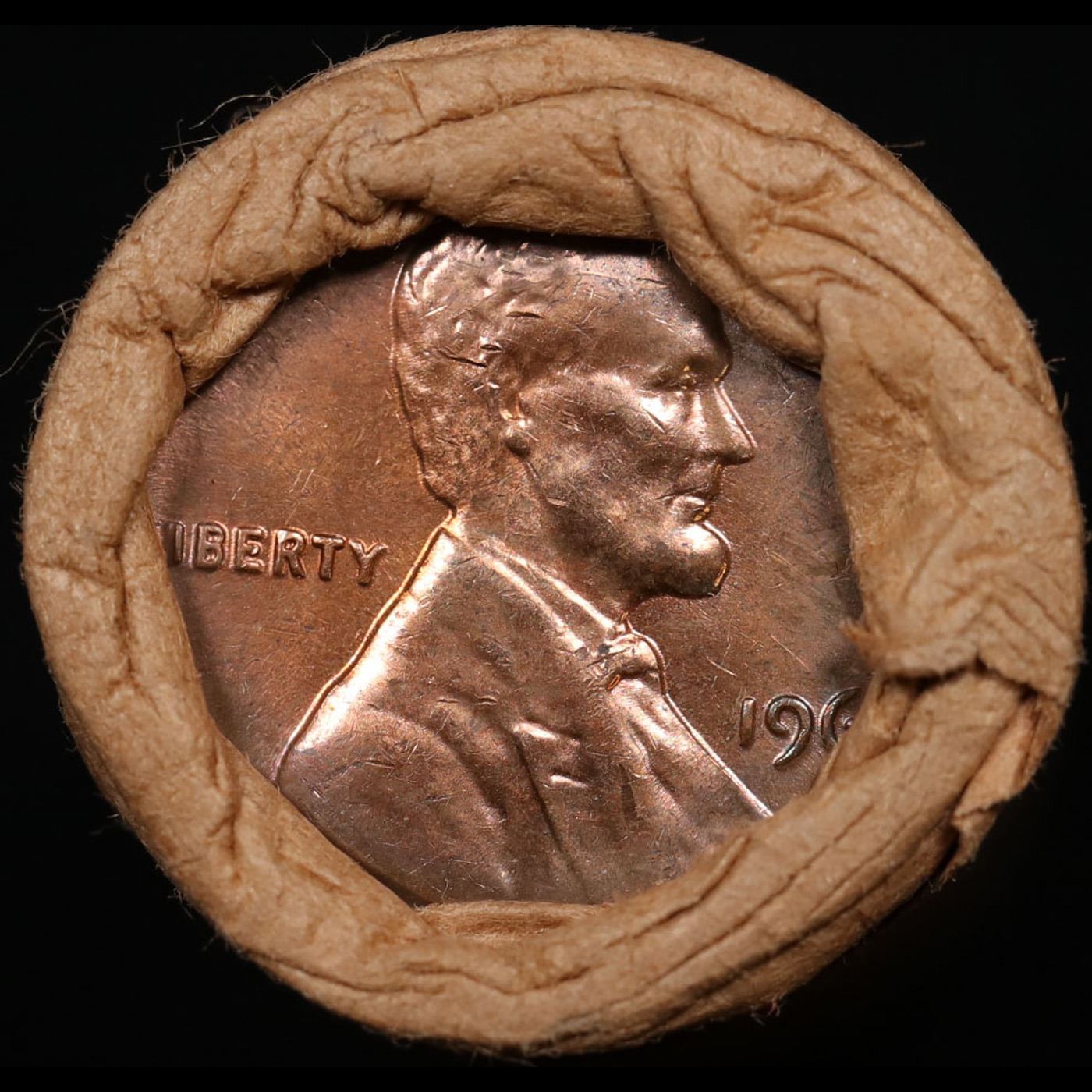 Shotgun Lincoln 1c roll, 1963-p 50 pcs Bank Wrapper.. A terrific Shotgun roll of Lincoln cents. Most if not all coin should be cherry red.