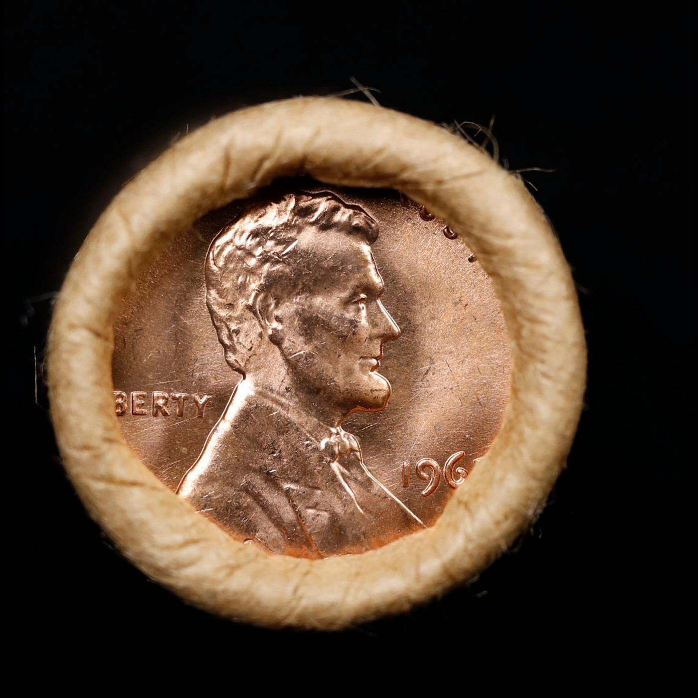 Shotgun Lincoln 1c roll, 1963-p 50 pcs Brandt Wrapper . A terrific Shotgun roll of Lincoln cents. All coins appear to be cherry red. Trends ms65 rd $16