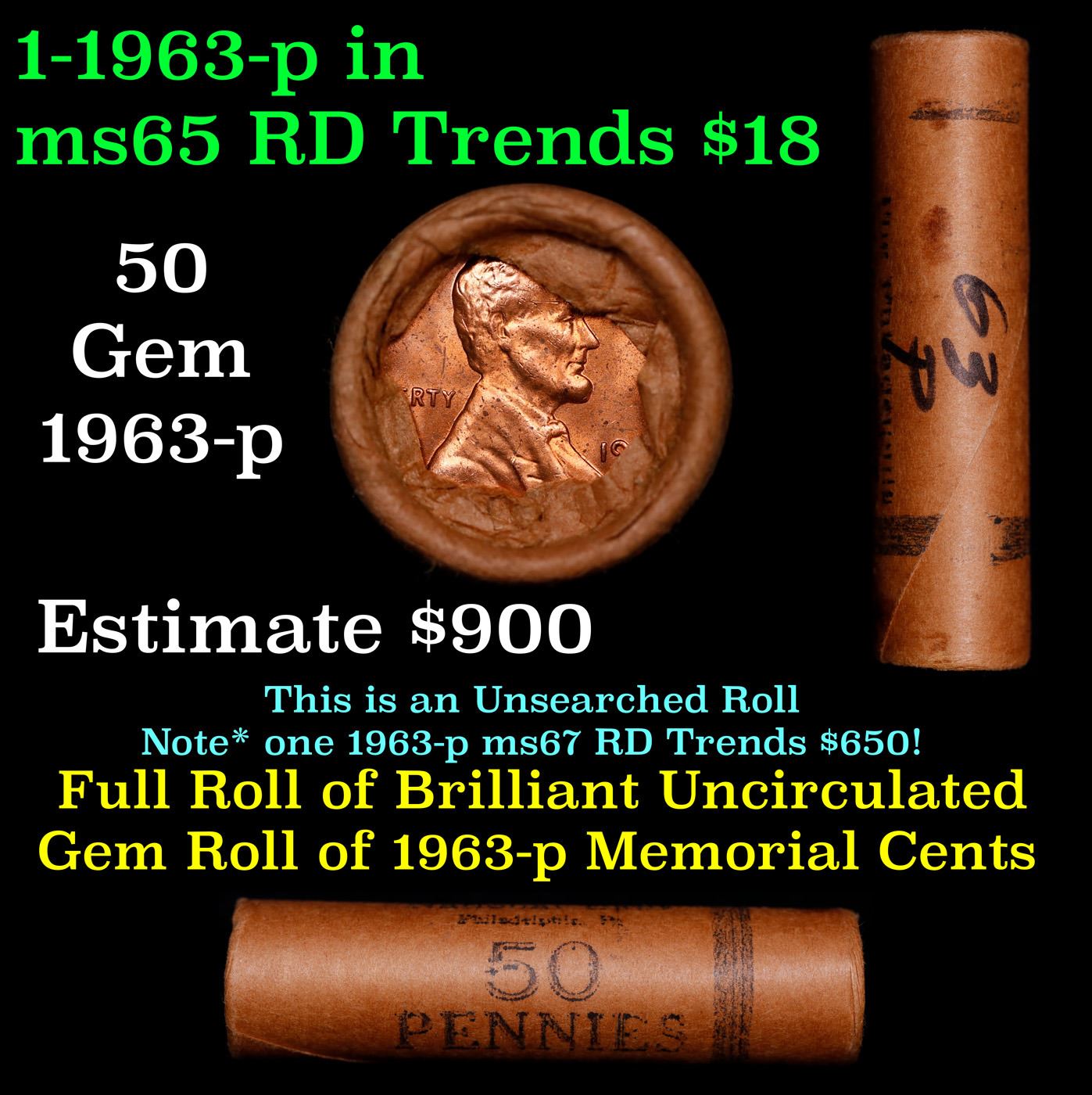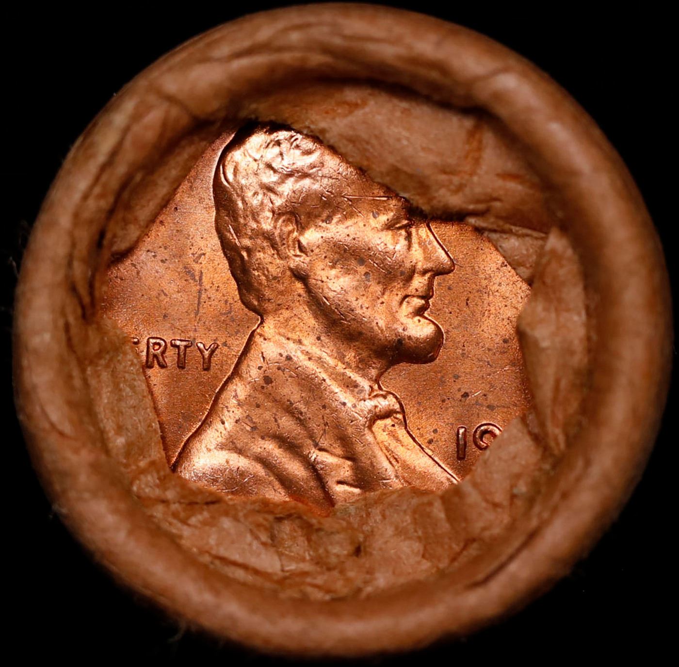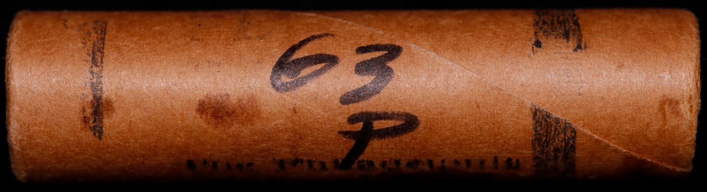 Shotgun Lincoln 1c roll, 1963-p 50 pcs National Bank Wrapper.. A terrific Shotgun roll of Lincoln cents. Most if not all coin should be cherry red.