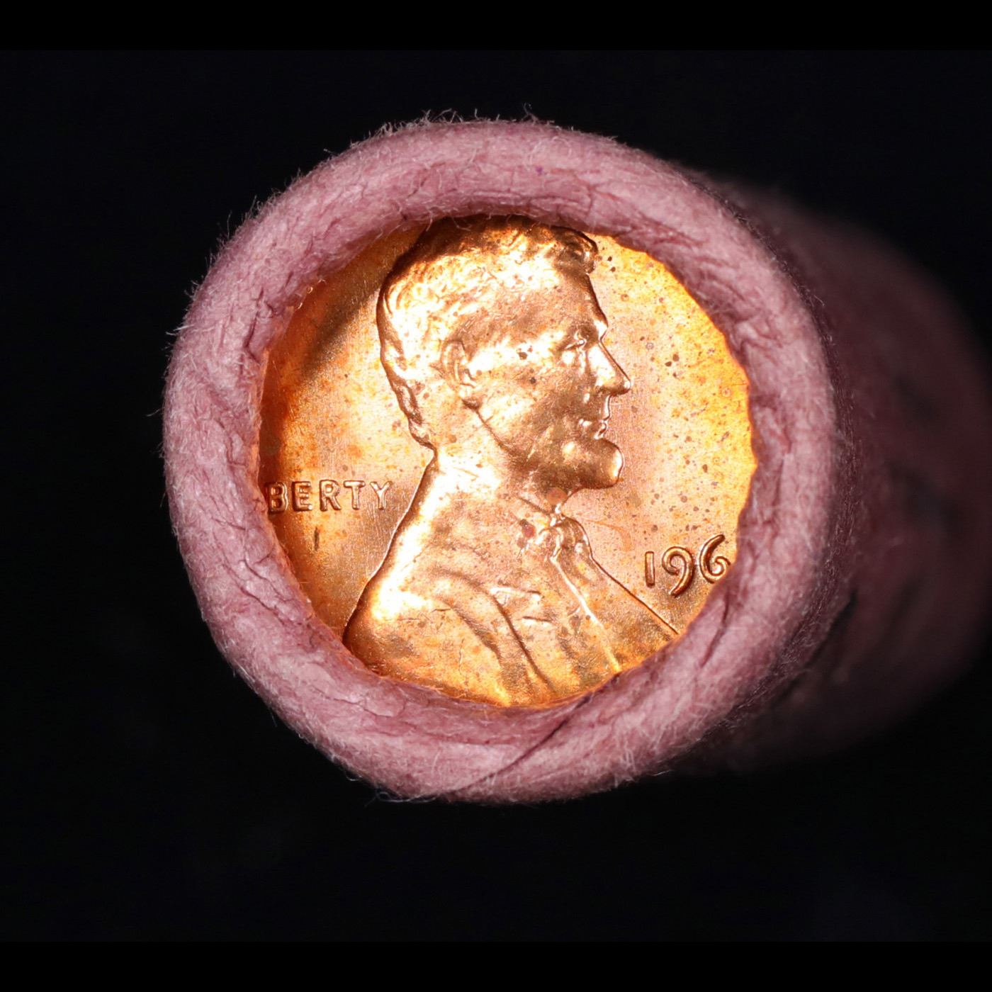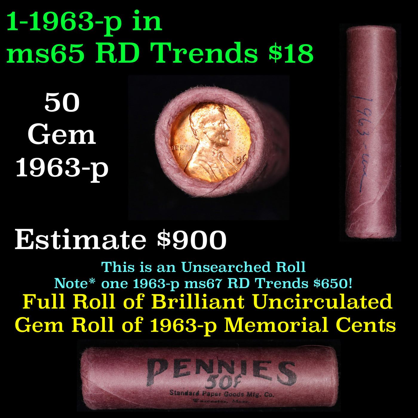 Shotgun Lincoln 1c roll, 1963-p 50 pcs Standard Paper Goods Wrapper.. A terrific Shotgun roll of Lincoln cents. Most if not all coin should be cherry red.