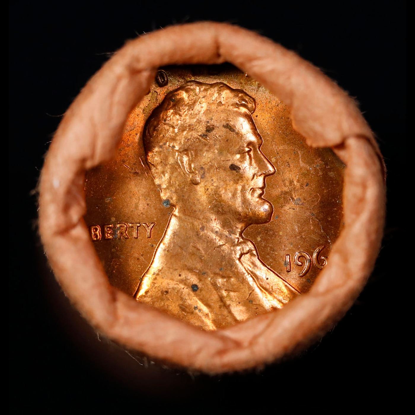 Shotgun Lincoln 1c roll, 1963-p 50 pcs brandt wrapper A terrific Shotgun roll of Lincoln cents. Most if not all coin should be cherry red.