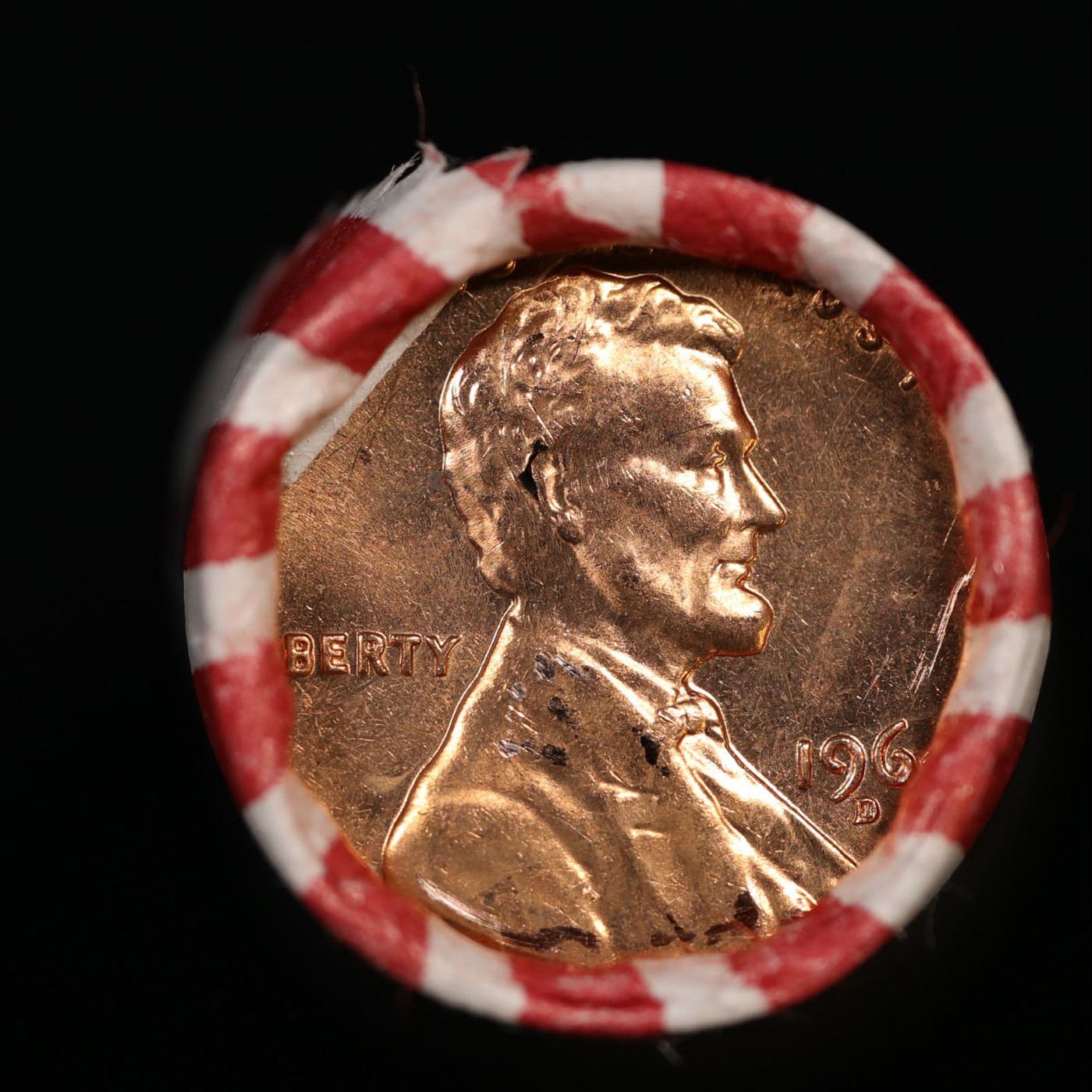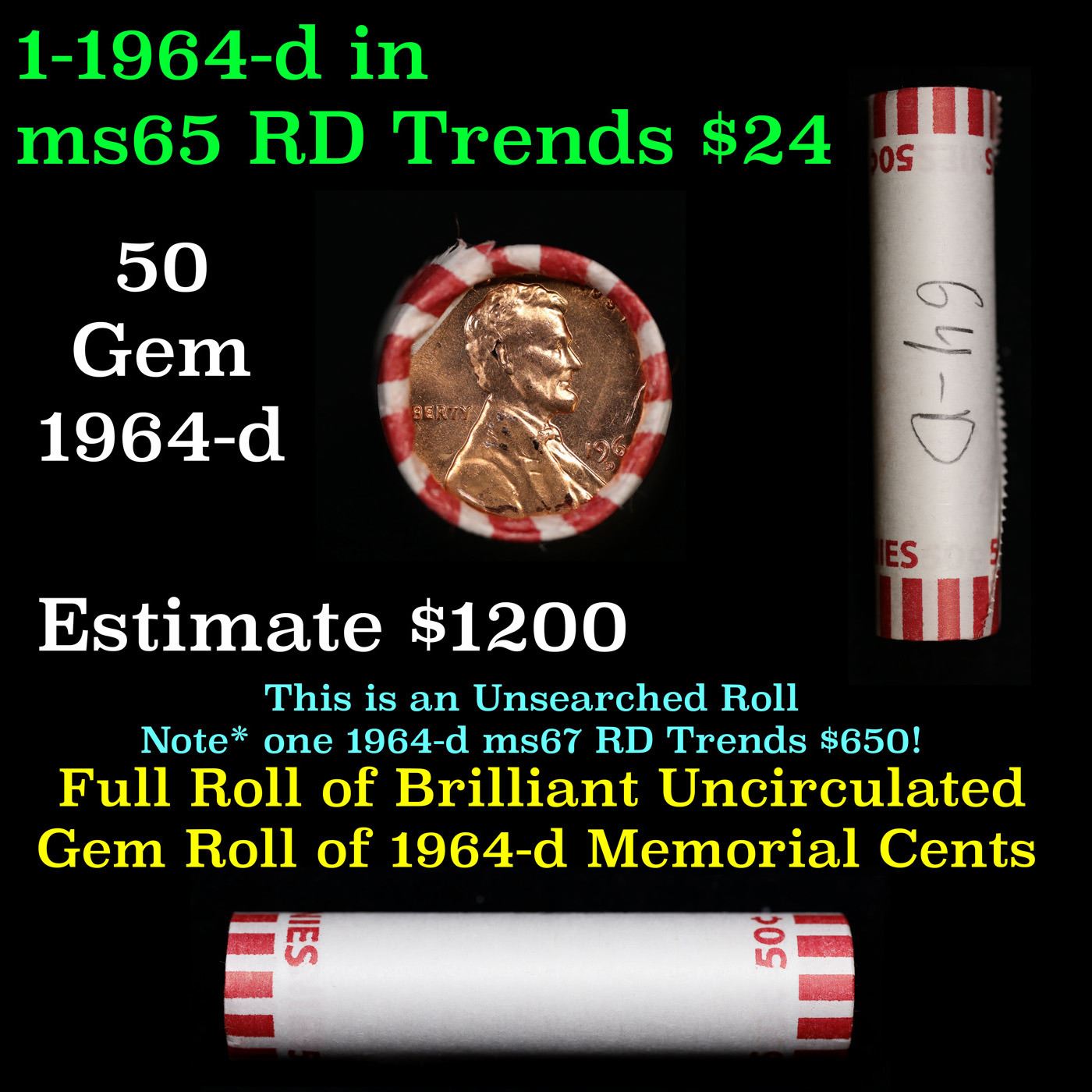 Shotgun Lincoln 1c roll, 1964-d 50 pcs Bank Wrapper.. A terrific Shotgun roll of Lincoln cents. Most if not all coin should be cherry red.