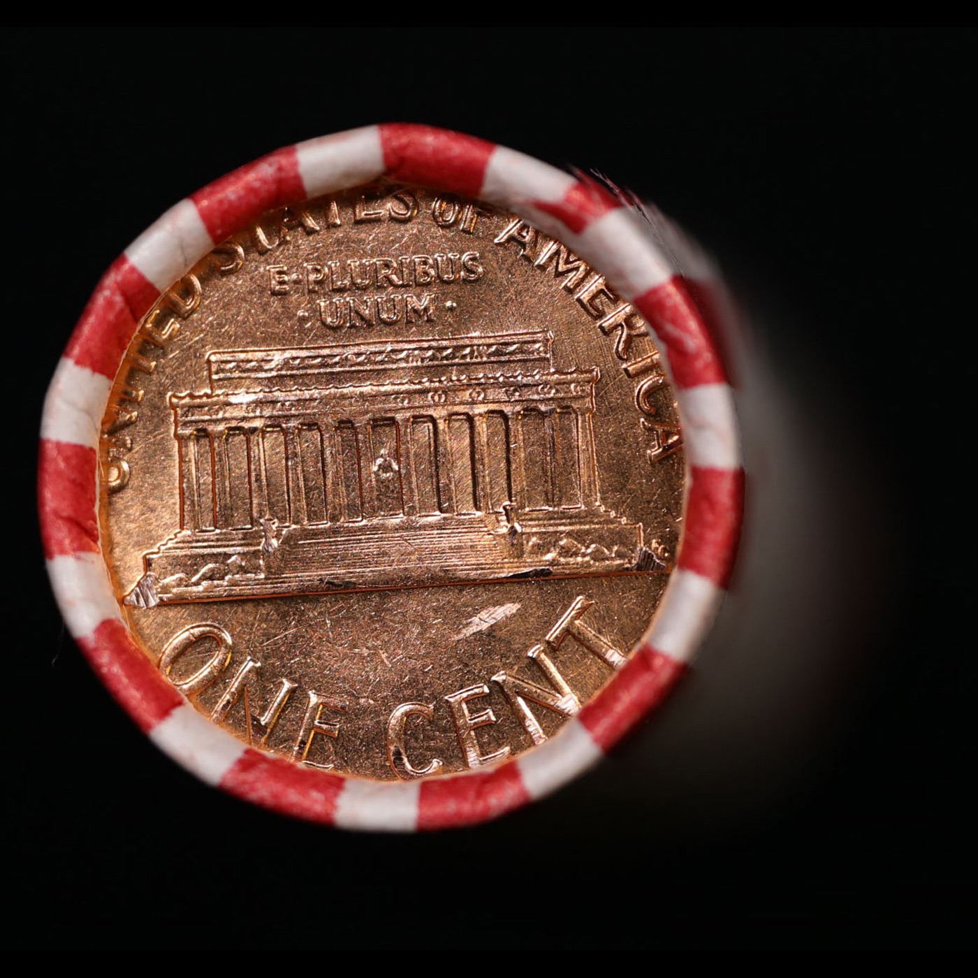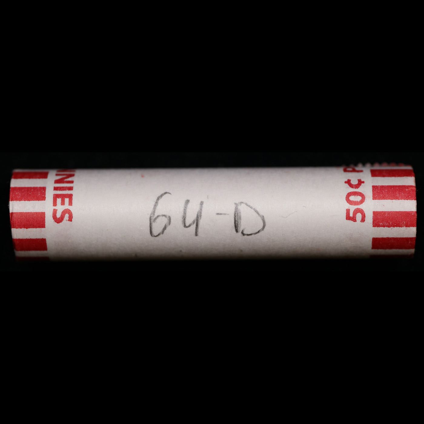Shotgun Lincoln 1c roll, 1964-d 50 pcs Bank Wrapper.. A terrific Shotgun roll of Lincoln cents. Most if not all coin should be cherry red.