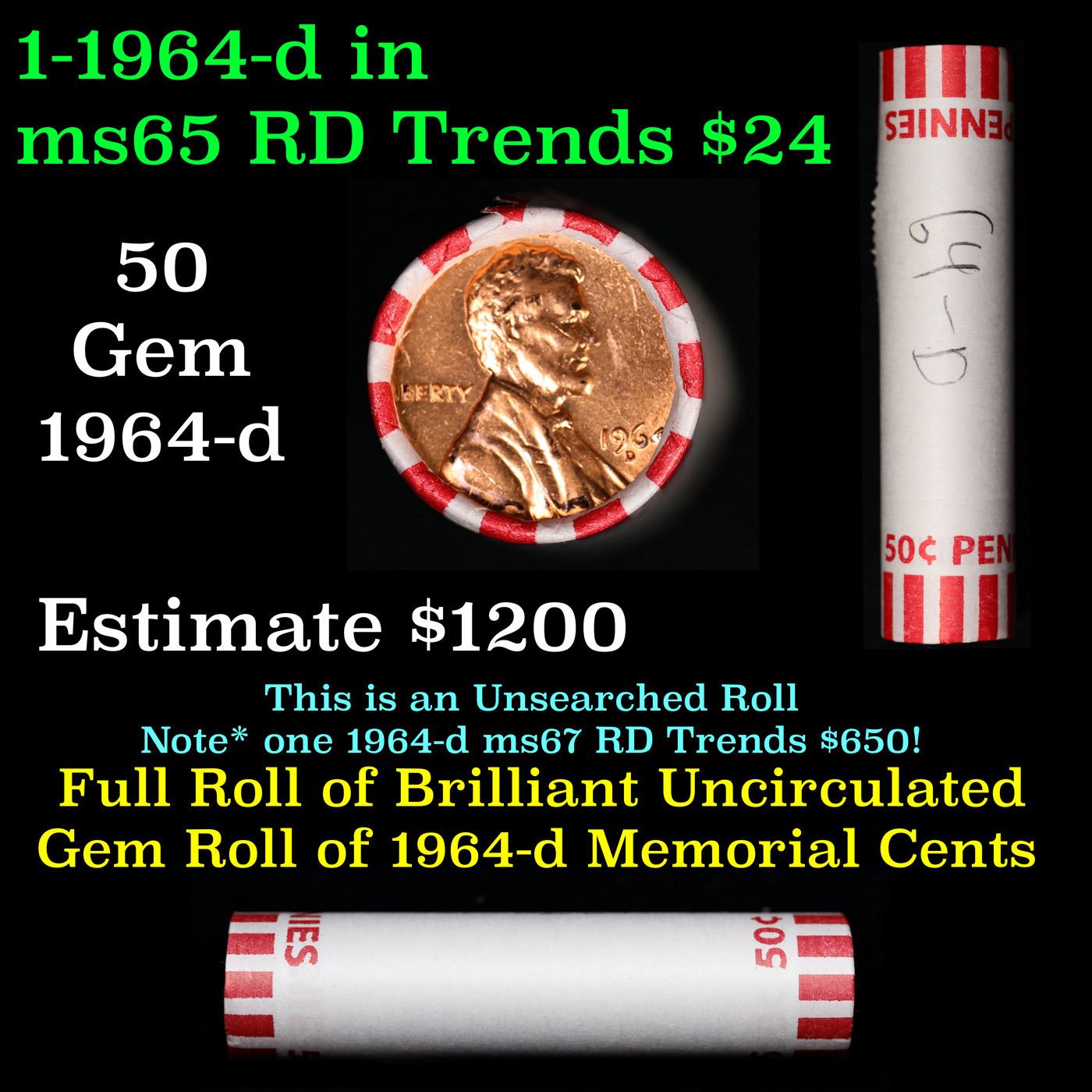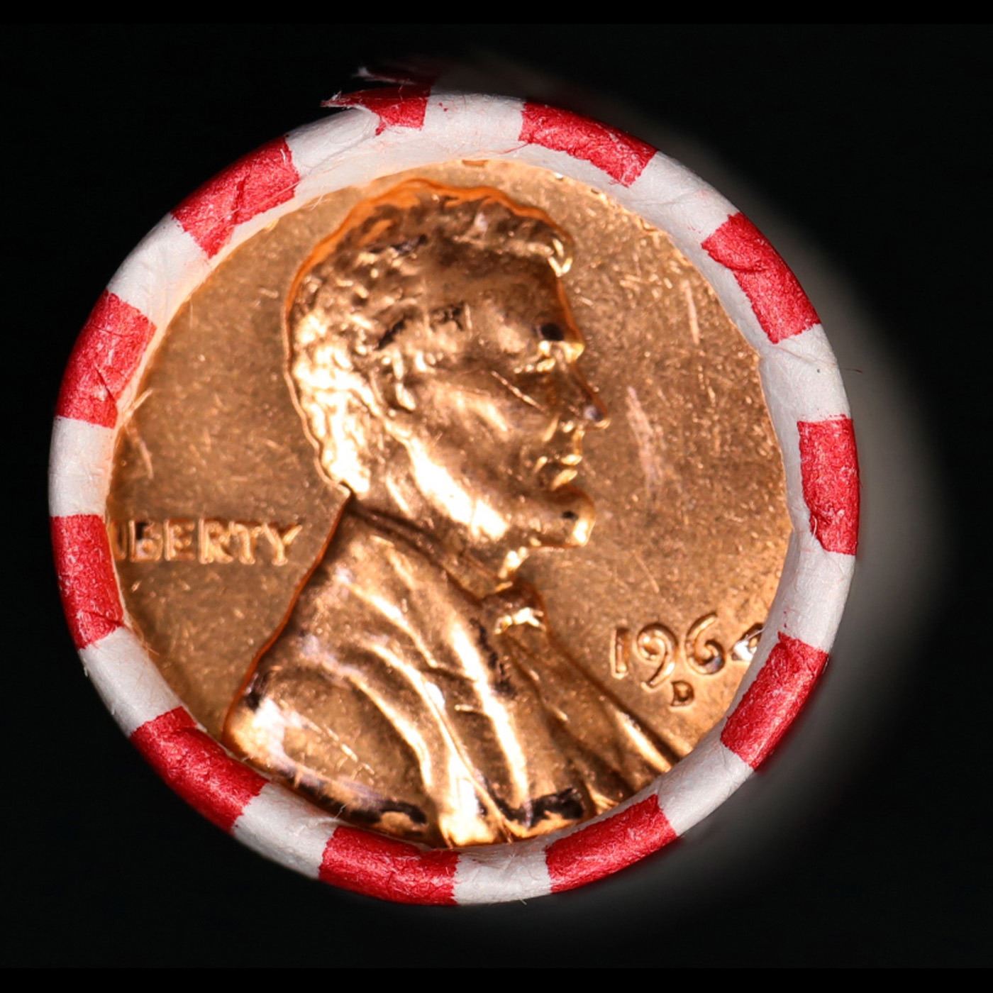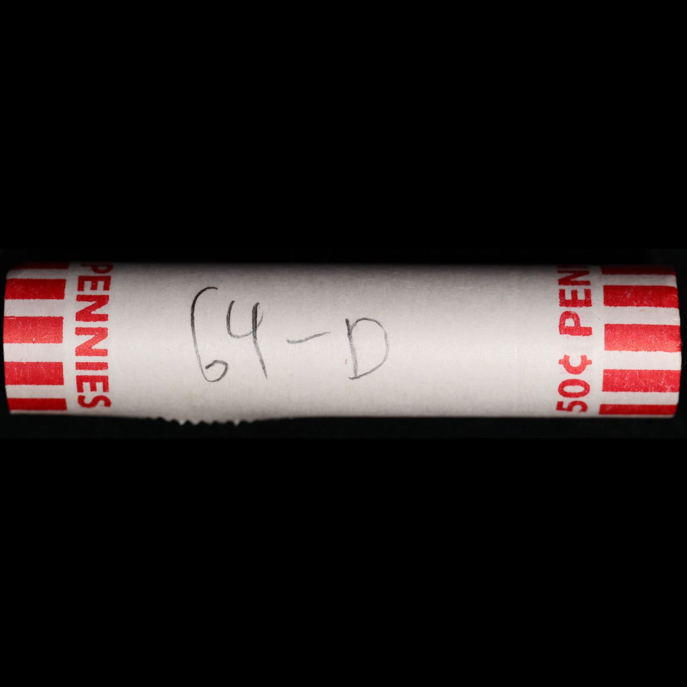 Shotgun Lincoln 1c roll, 1964-d 50 pcs Bank Wrapper.. A terrific Shotgun roll of Lincoln cents. Most if not all coin should be cherry red.