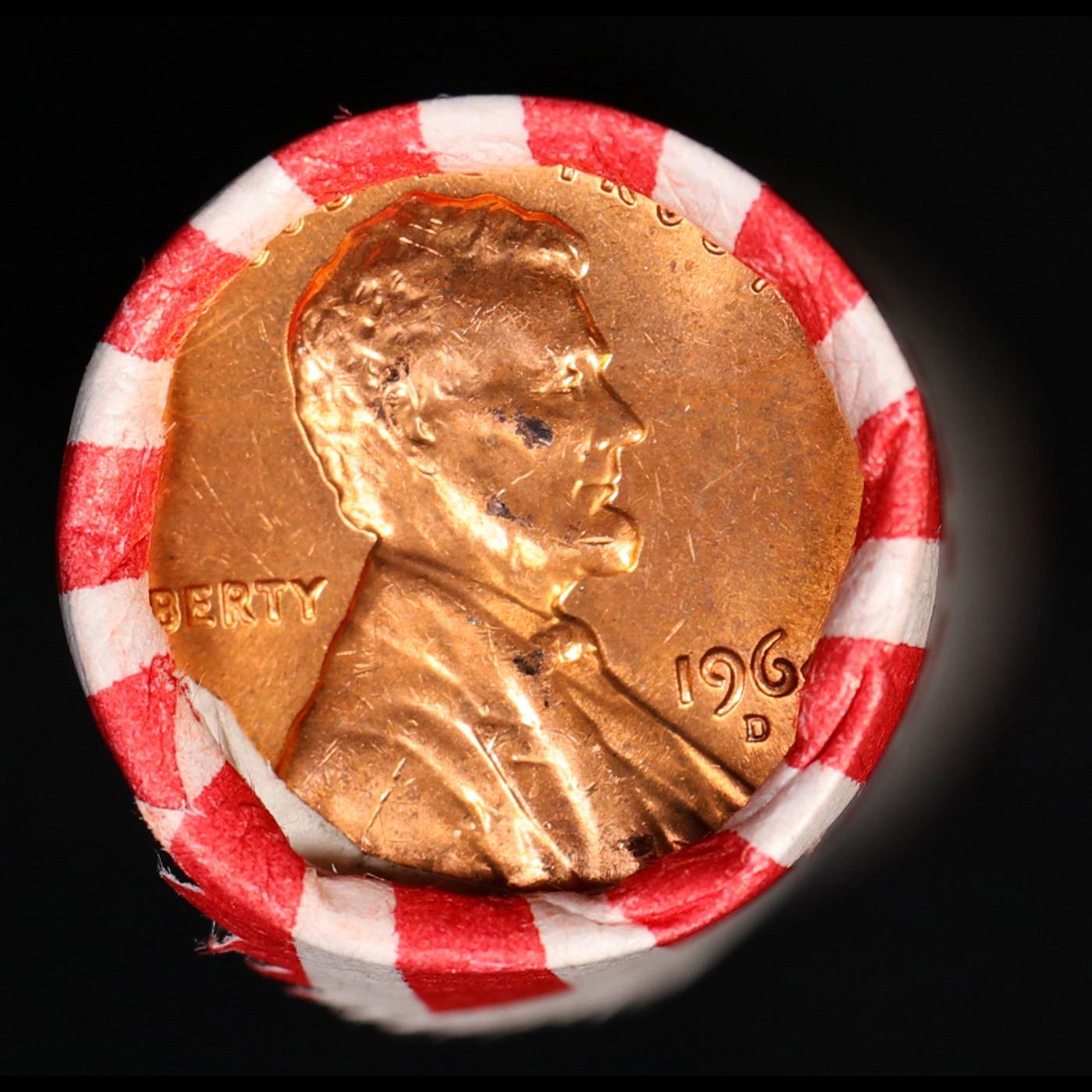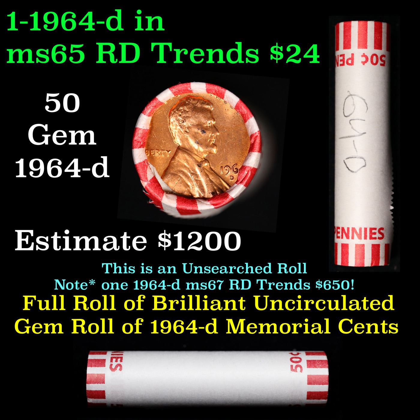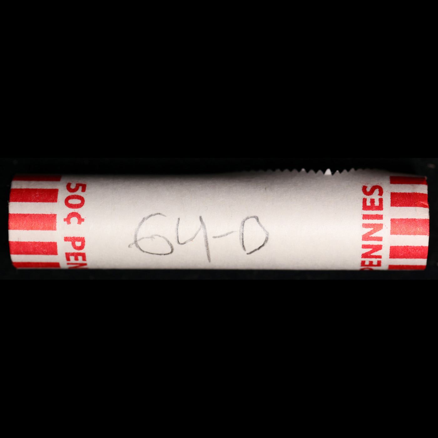Shotgun Lincoln 1c roll, 1964-d 50 pcs Bank Wrapper.. A terrific Shotgun roll of Lincoln cents. Most if not all coin should be cherry red.