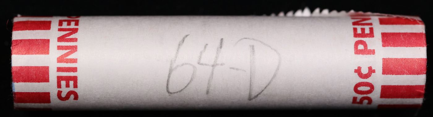 Shotgun Lincoln 1c roll, 1964-d 50 pcs Bank Wrapper.. A terrific Shotgun roll of Lincoln cents. Most if not all coin should be cherry red.