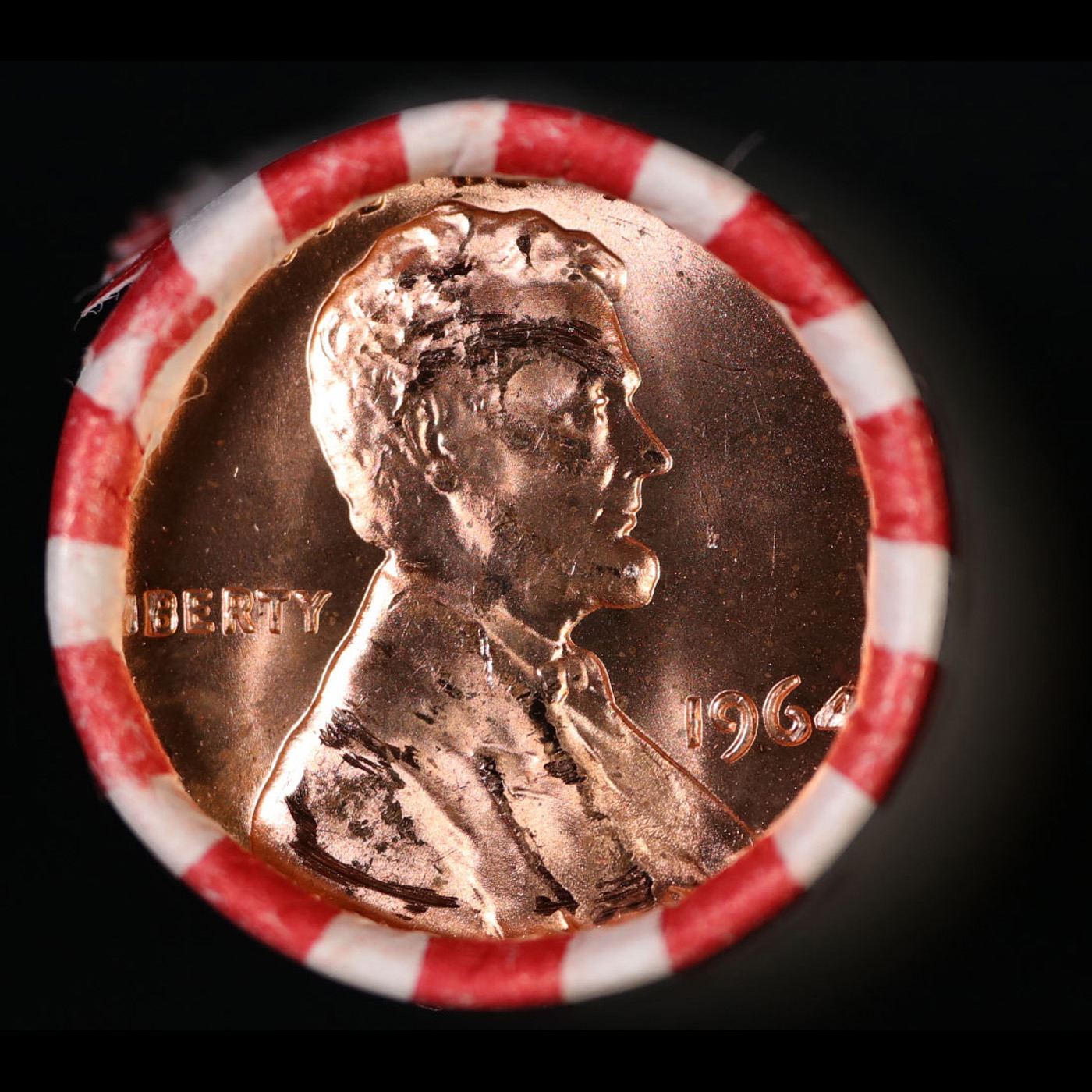 Shotgun Lincoln 1c roll, 1964-p 50 pcs Bank Wrapper.. A terrific Shotgun roll of Lincoln cents. Most if not all coin should be cherry red.