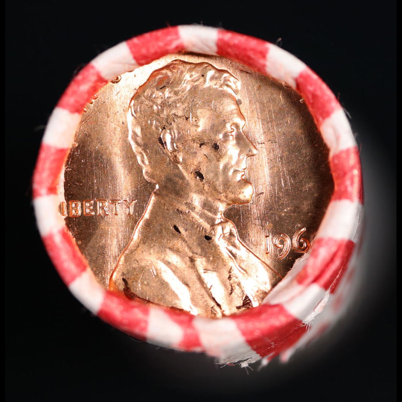 Shotgun Lincoln 1c roll, 1964-p 50 pcs Bank Wrapper.. A terrific Shotgun roll of Lincoln cents. Most if not all coin should be cherry red.