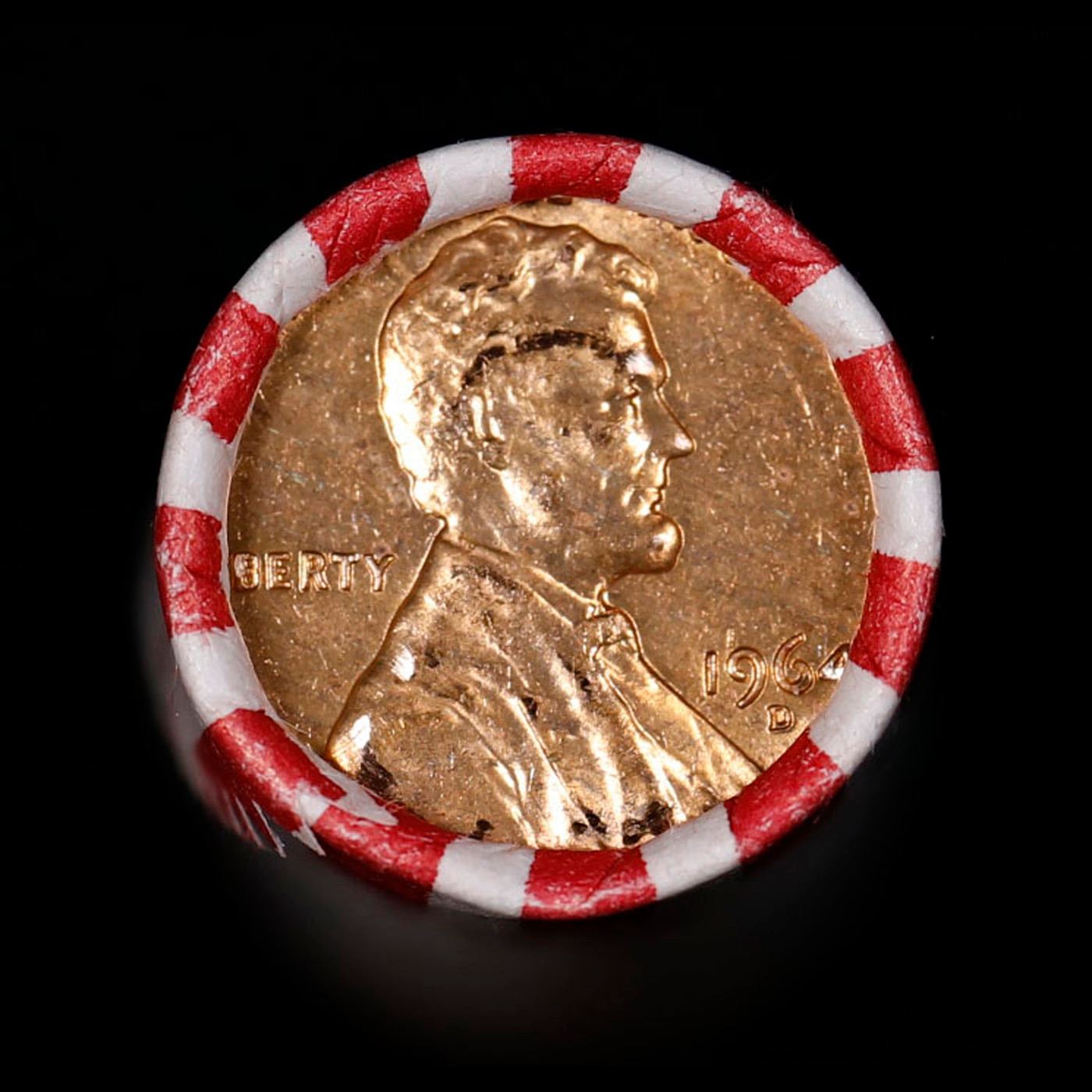 Shotgun Lincoln 1c roll, 1964-p 50 pcs Bank Wrapper.. A terrific Shotgun roll of Lincoln cents. Most if not all coin should be cherry red.
