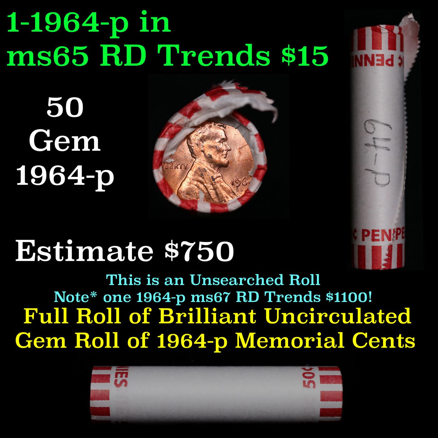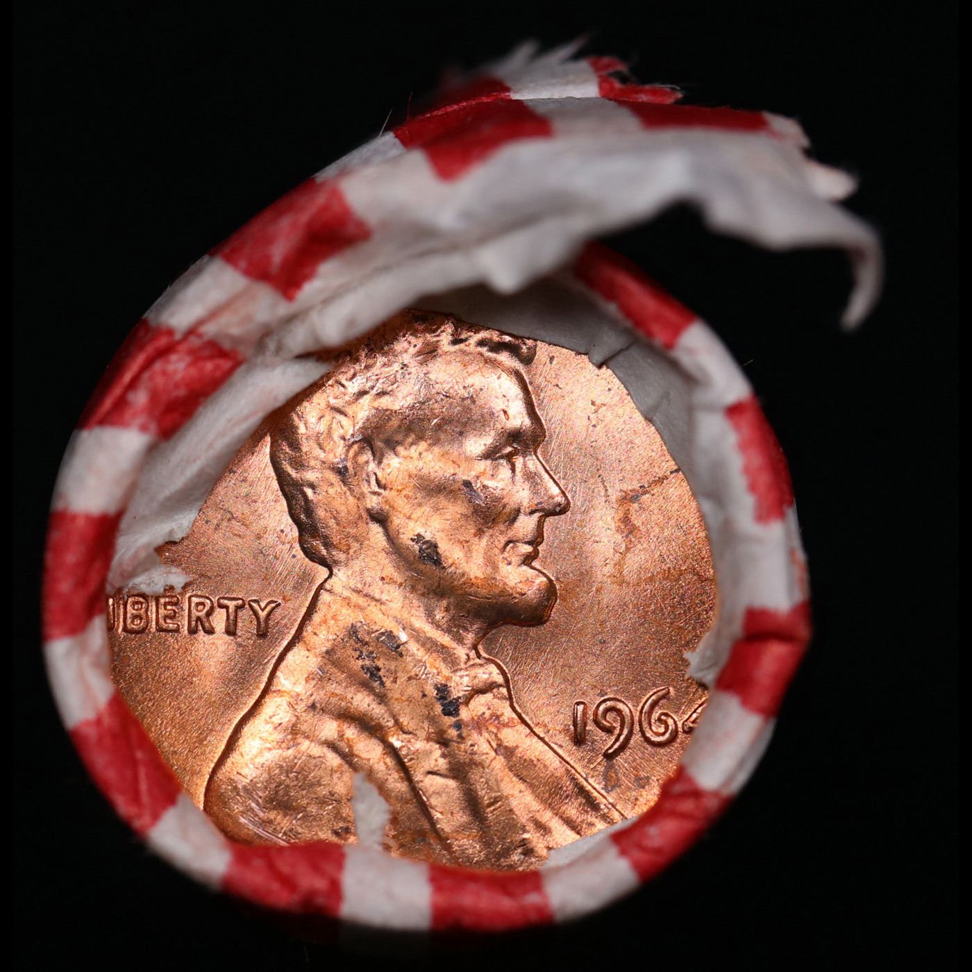 Shotgun Lincoln 1c roll, 1964-p 50 pcs Bank Wrapper.. A terrific Shotgun roll of Lincoln cents. Most if not all coin should be cherry red.