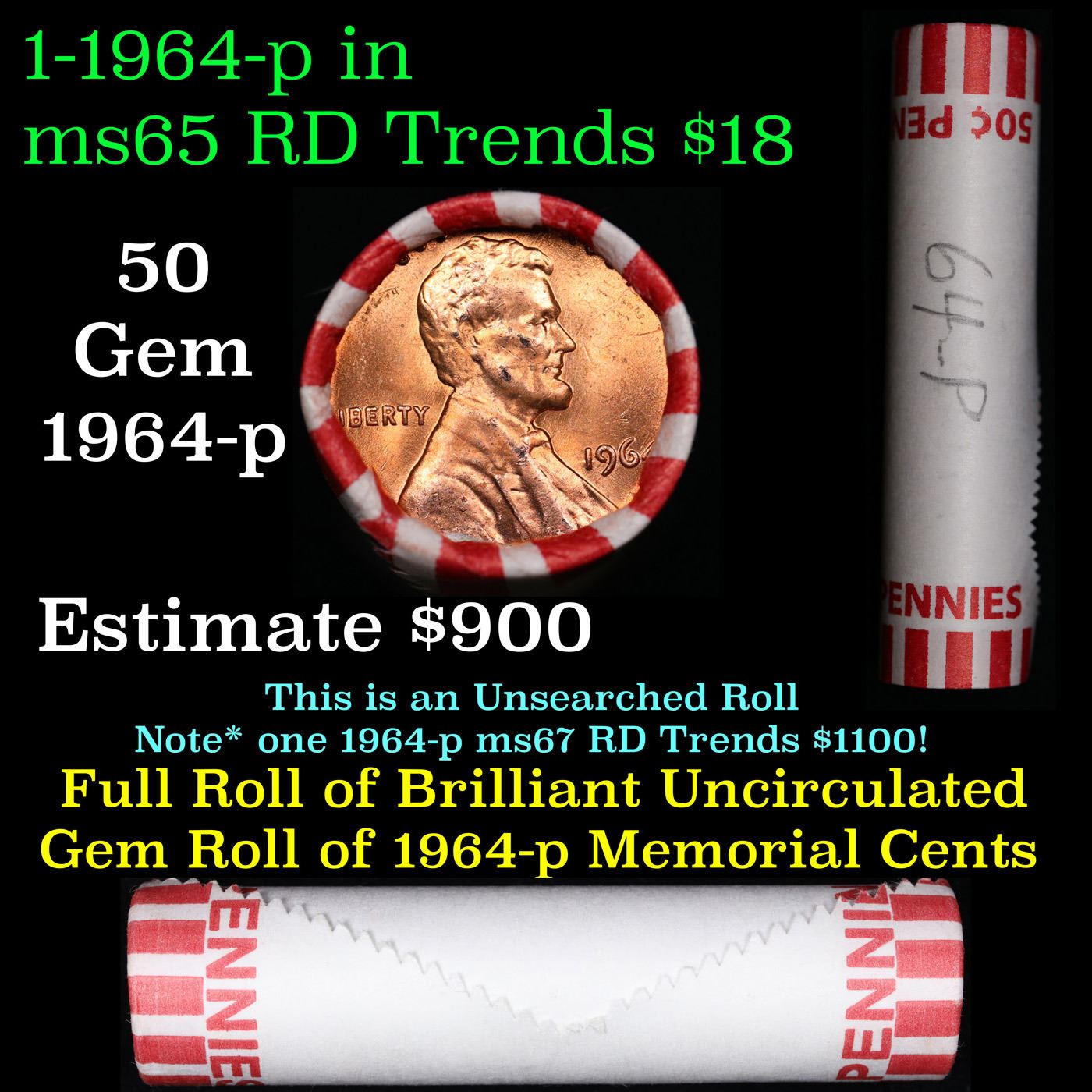 Shotgun Lincoln 1c roll, 1964-p 50 pcs Bank Wrapper.. A terrific Shotgun roll of Lincoln cents. Most if not all coin should be cherry red.