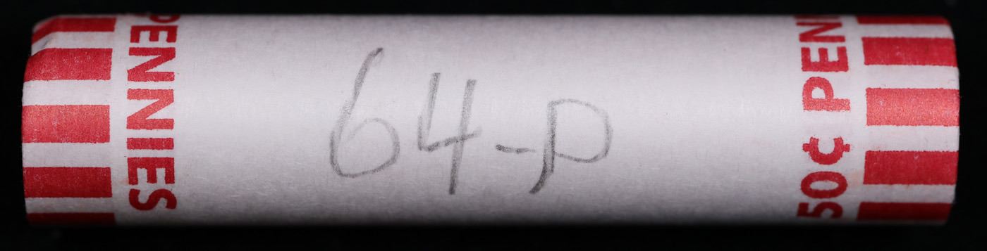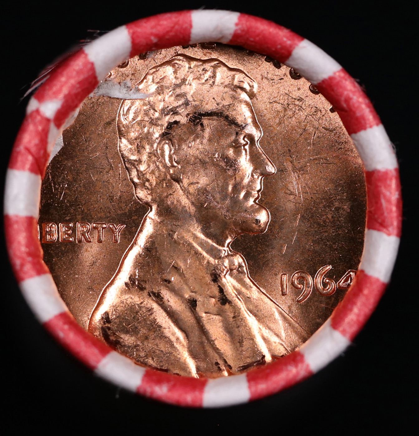 Shotgun Lincoln 1c roll, 1964-p 50 pcs Bank Wrapper.. A terrific Shotgun roll of Lincoln cents. Most if not all coin should be cherry red.