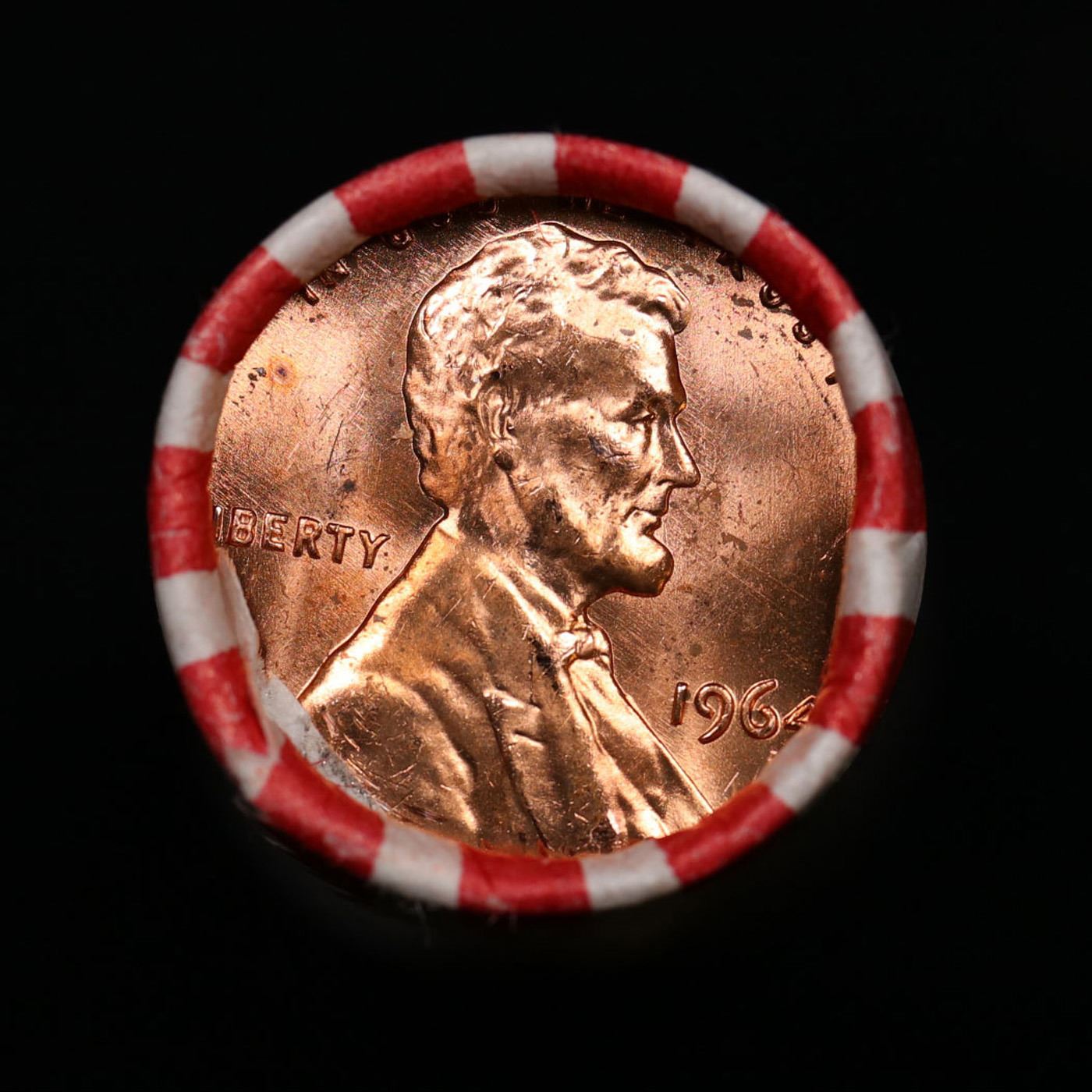 Shotgun Lincoln 1c roll, 1964-p 50 pcs Bank Wrapper.. A terrific Shotgun roll of Lincoln cents. Most if not all coin should be cherry red.