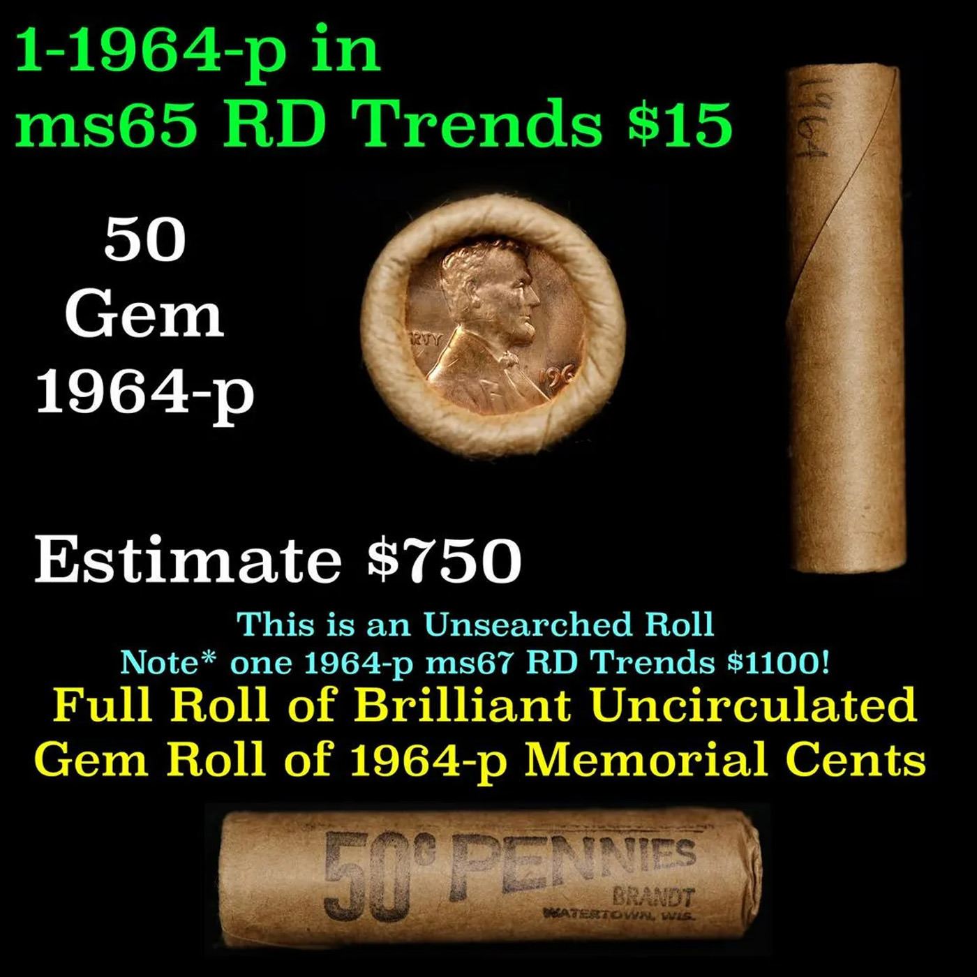 Shotgun Lincoln 1c roll, 1964-p 50 pcs Brandt Wrapper.
