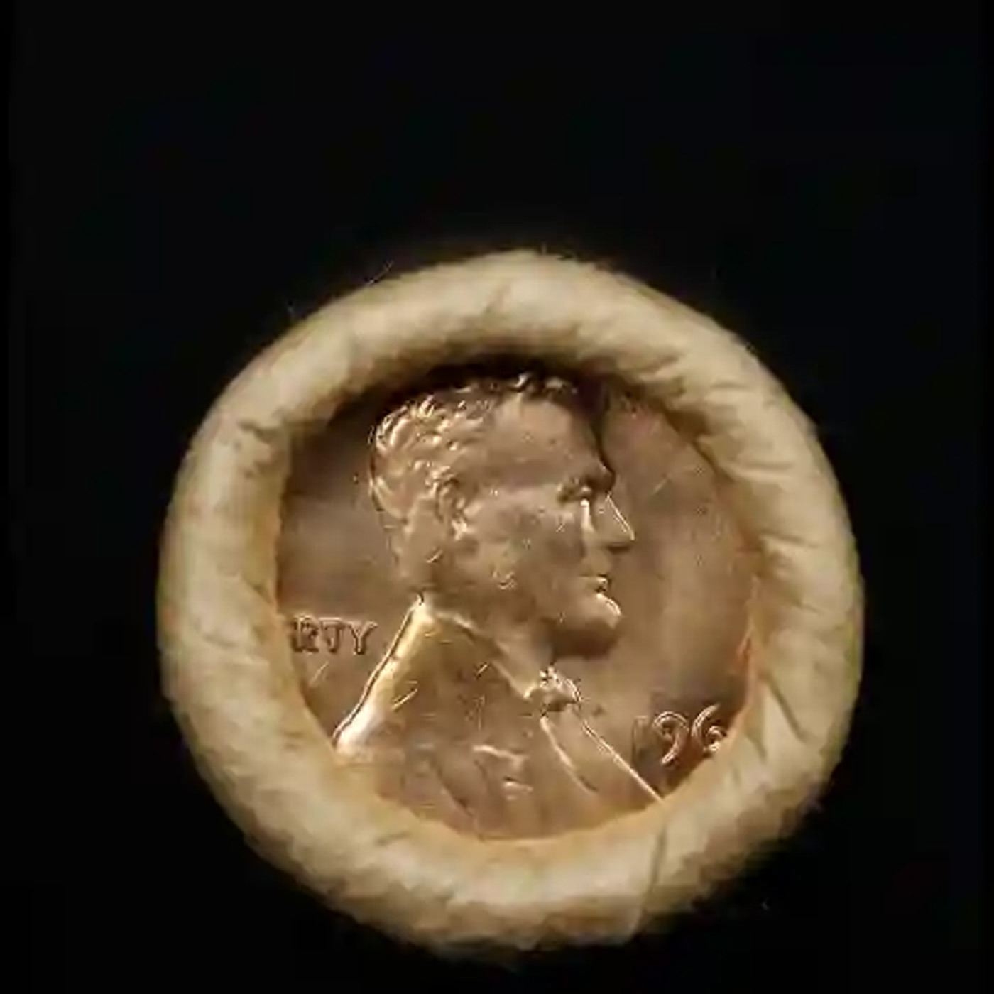 Shotgun Lincoln 1c roll, 1964-p 50 pcs Brandt Wrapper.. A terrific Shotgun roll of Lincoln cents. Most if not all coin should be cherry red.