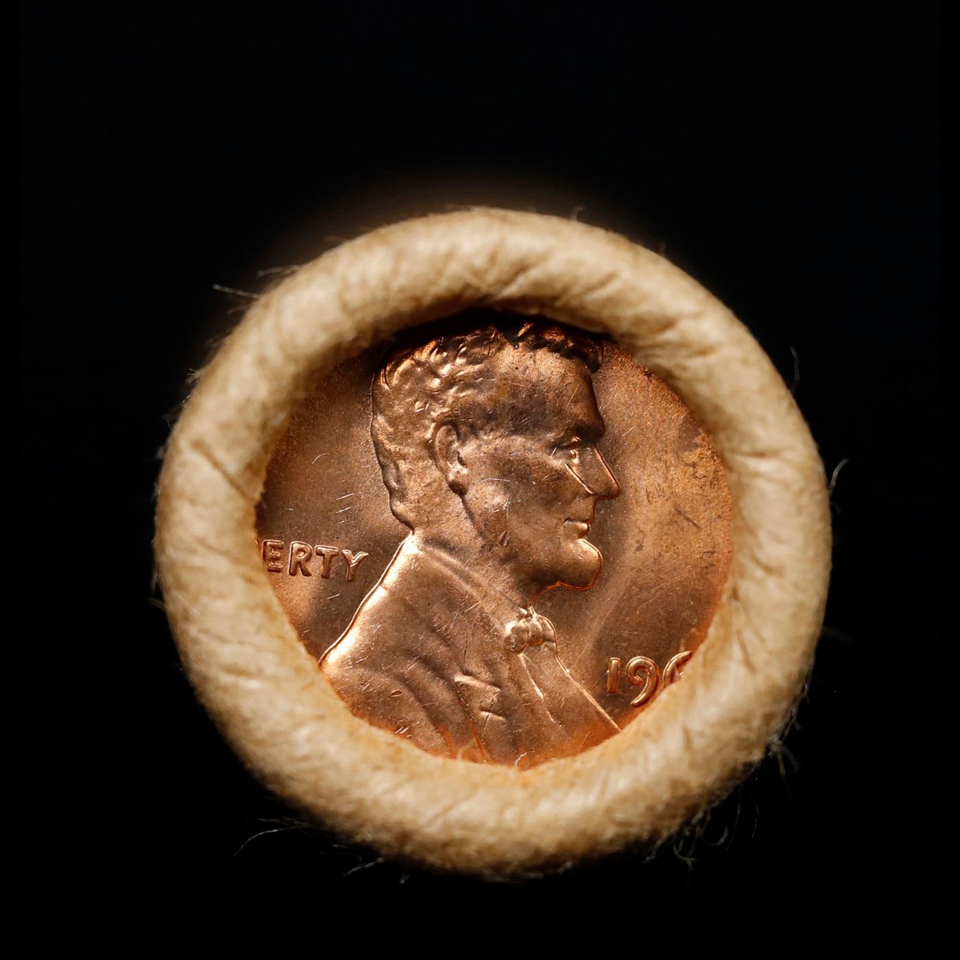 Shotgun Lincoln 1c roll, 1964-p 50 pcs Brandt Wrapper.. A terrific Shotgun roll of Lincoln cents. Most if not all coin should be cherry red.