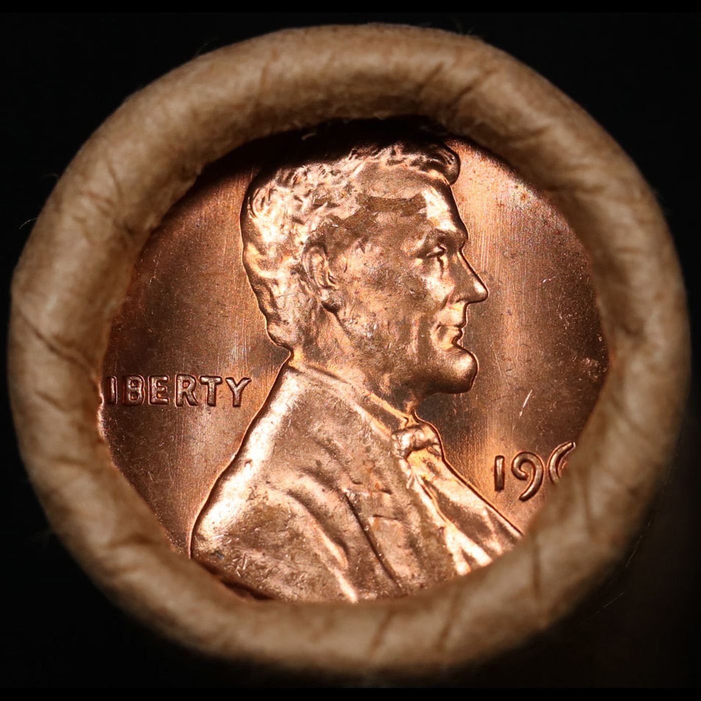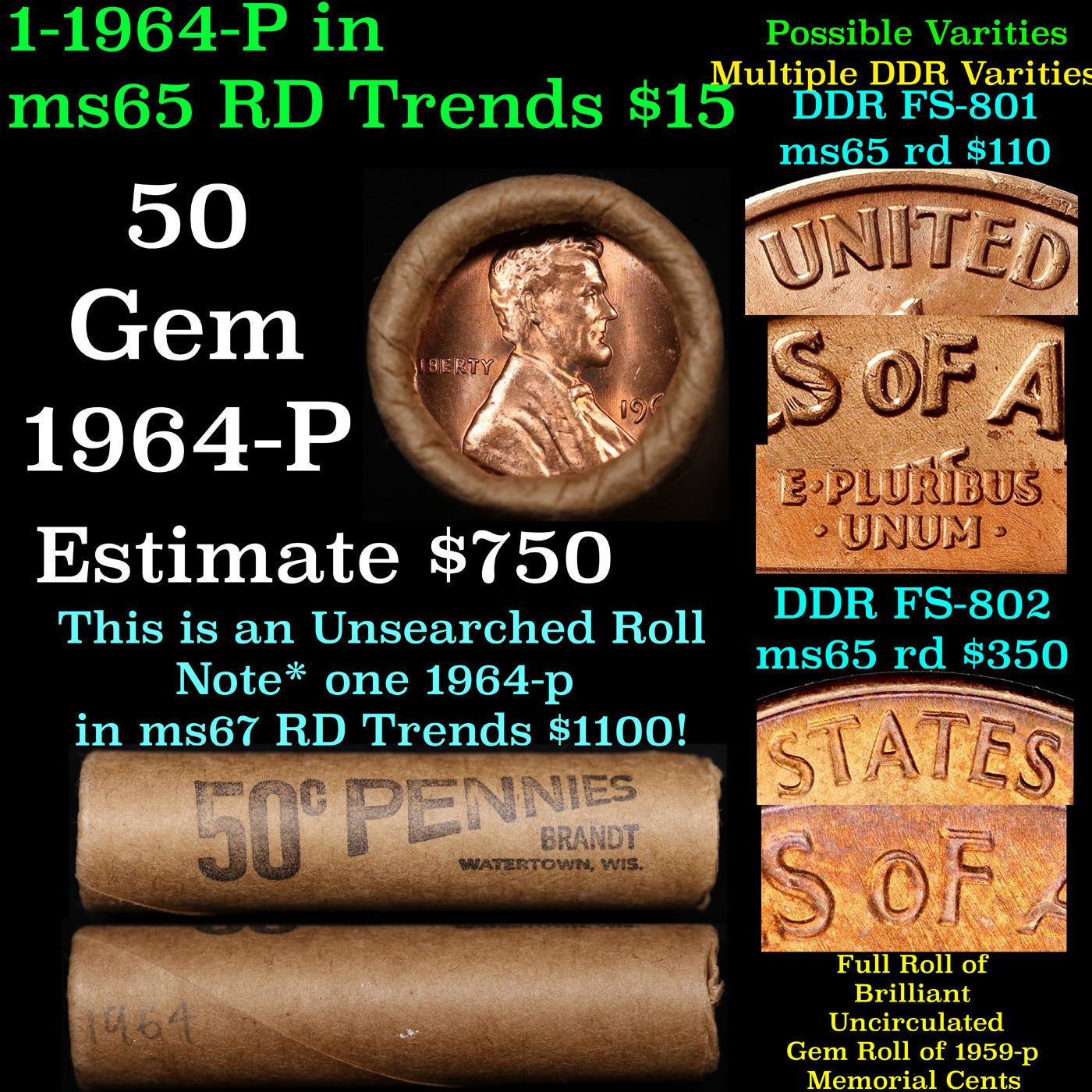 Shotgun Lincoln 1c roll, 1964-p 50 pcs Brandt Wrapper.. A terrific Shotgun roll of Lincoln cents. Most if not all coin should be cherry red.