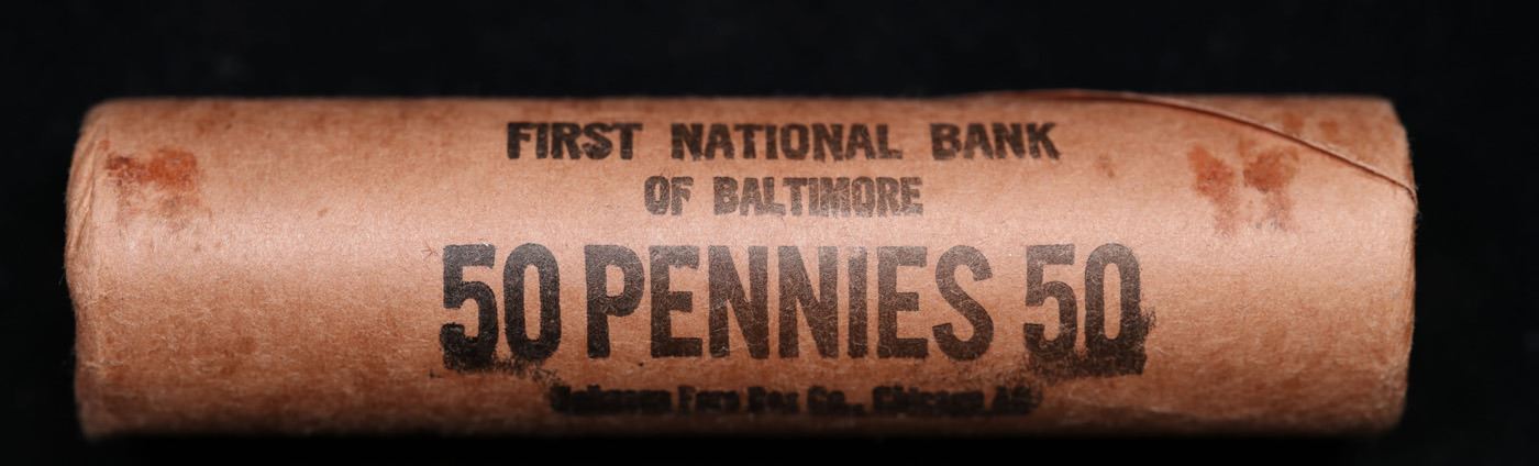 Shotgun Lincoln 1c roll, 1964-p 50 pcs First National Bank of Baltimore Wrapper.