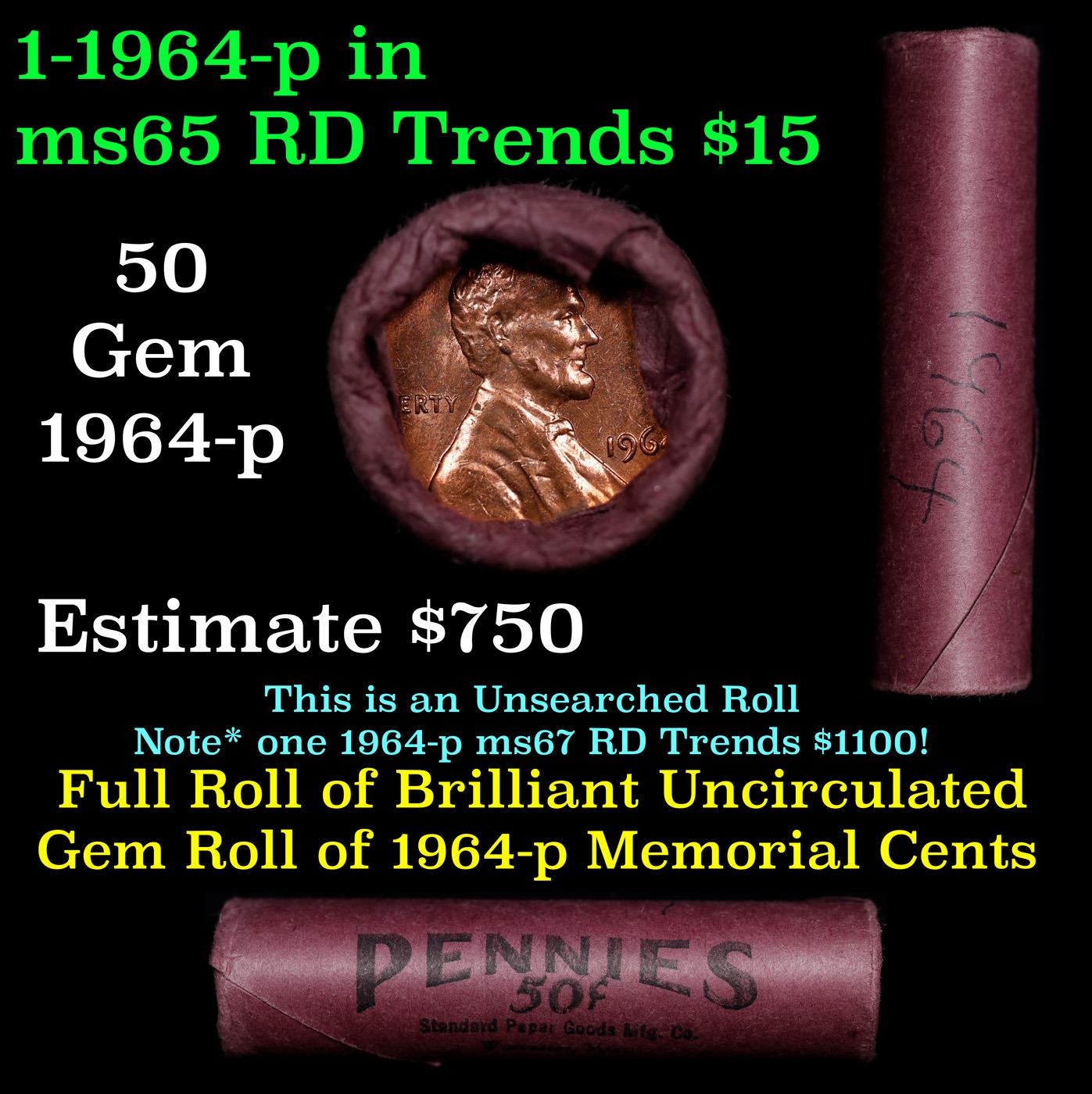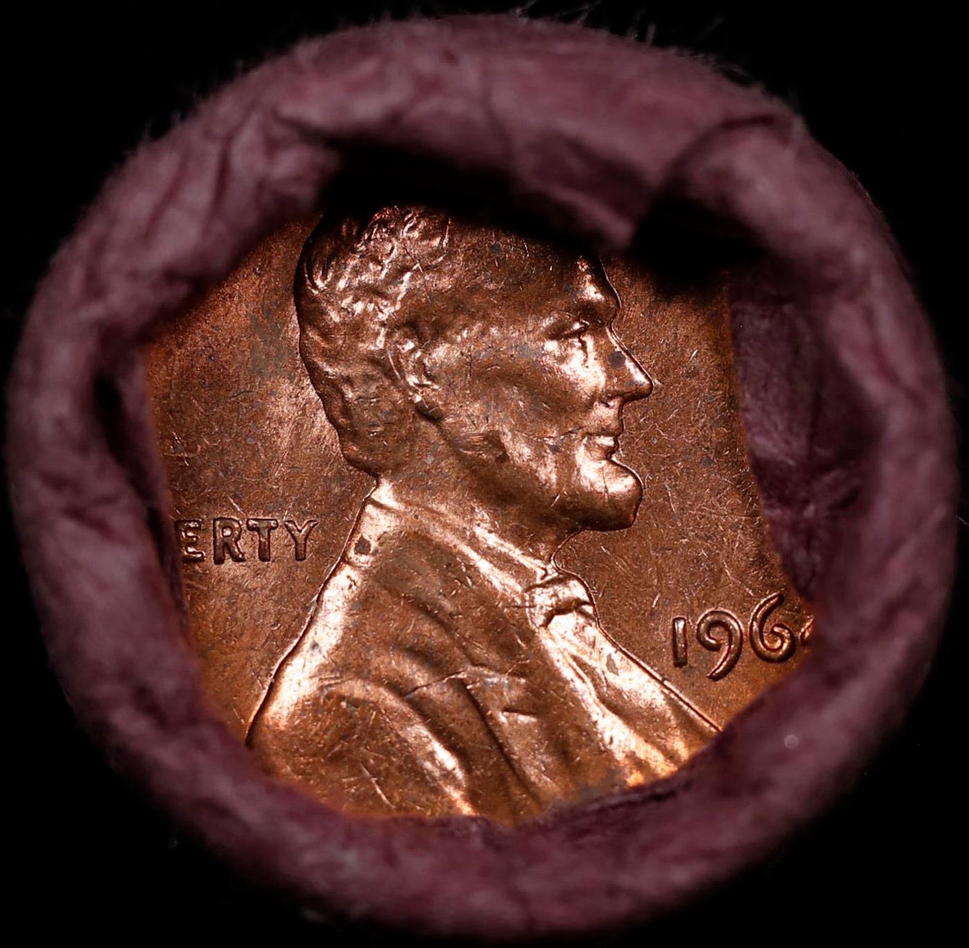 Shotgun Lincoln 1c roll, 1964-p 50 pcs Standard Paper goods Wrapper.. A terrific Shotgun roll of Lincoln cents. Most if not all coin should be cherry red.