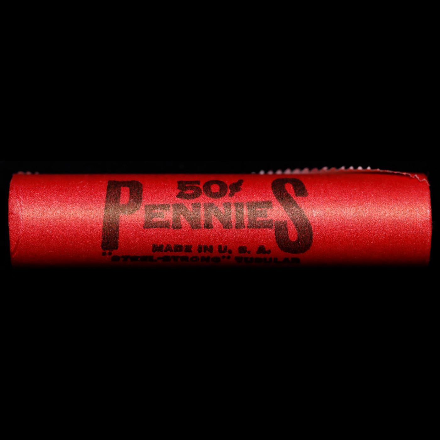 Shotgun Lincoln 1c roll, 1964-p 50 pcs Steel-Strong Wrapper.. A terrific Shotgun roll of Lincoln cents. Most if not all coin should be cherry red.