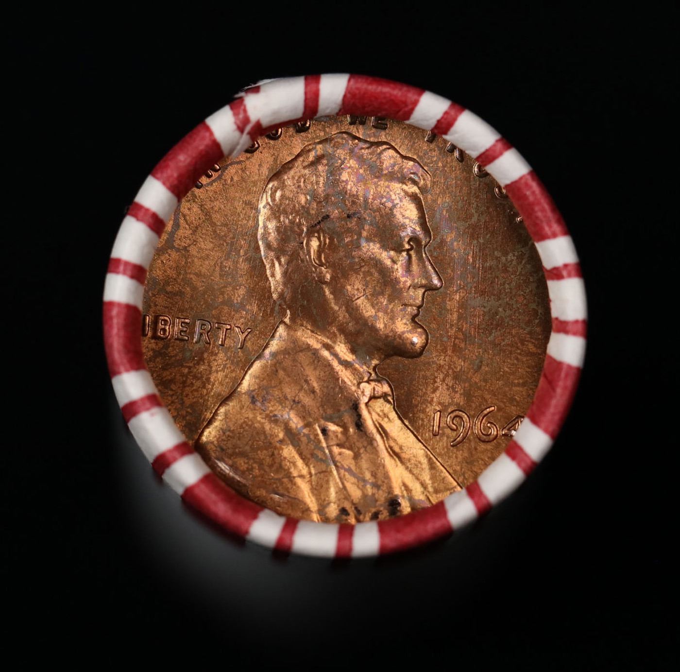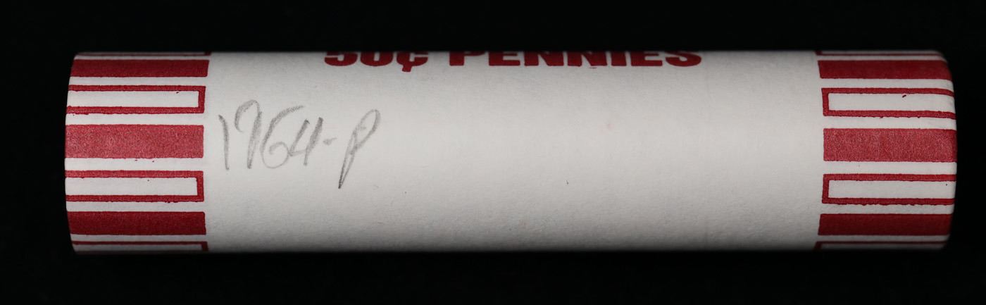 Shotgun Lincoln 1c roll, 1964-p 50 pcs Steel-Strong Wrapper.. A terrific Shotgun roll of Lincoln cents. Most if not all coin should be cherry red.