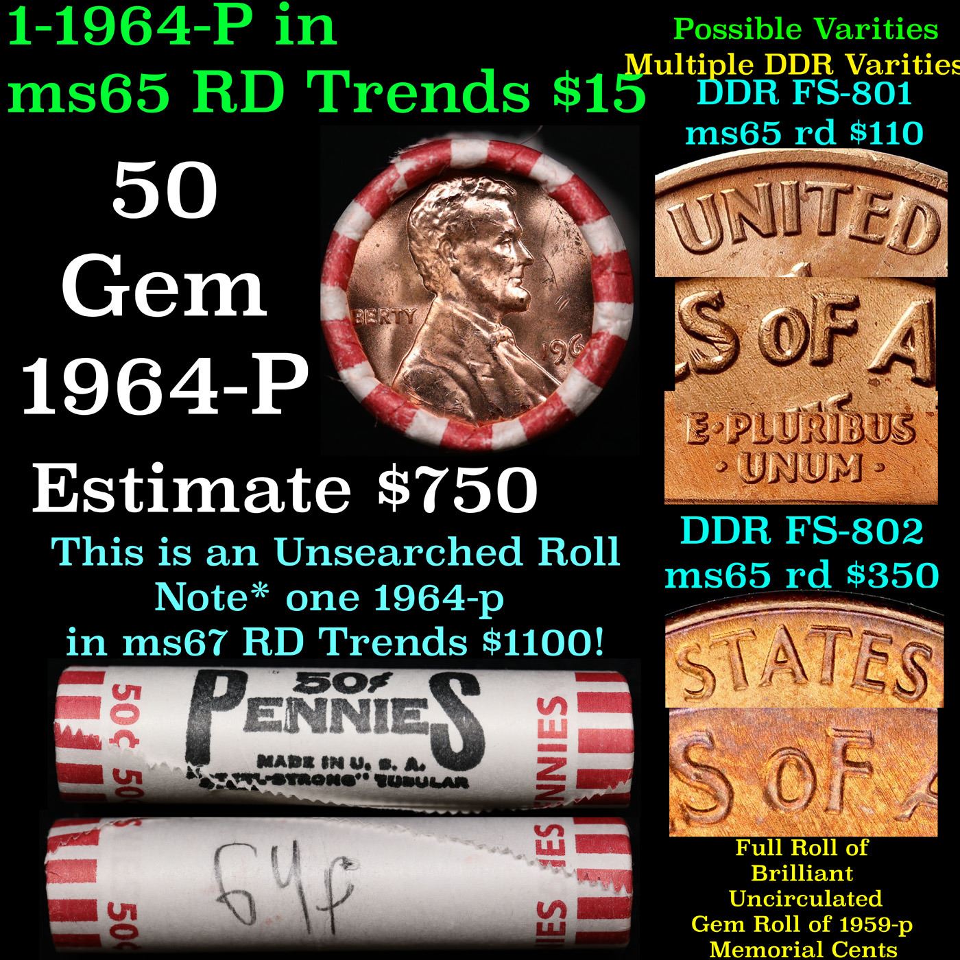 Shotgun Lincoln 1c roll, 1964-p 50 pcs Steel Strong Wrapper.. A terrific Shotgun roll of Lincoln cents. Most if not all coin should be cherry red.