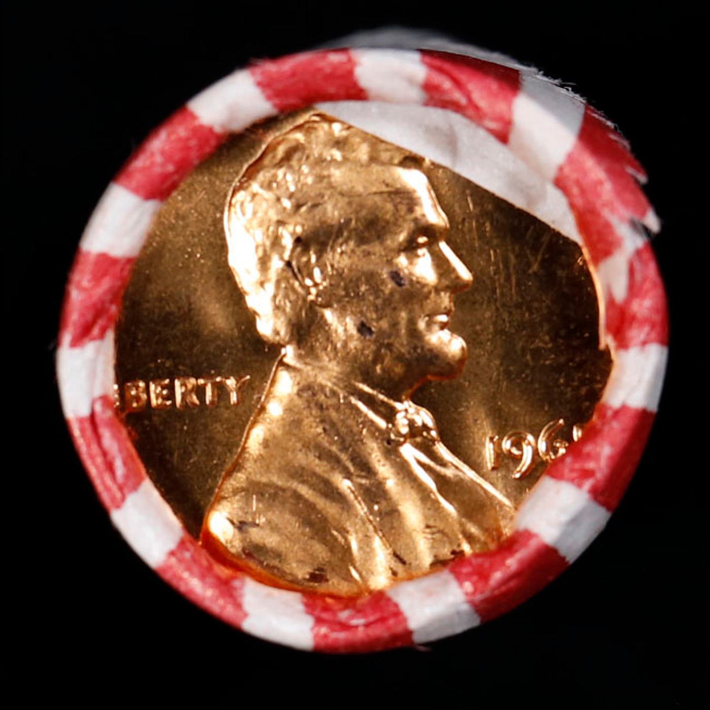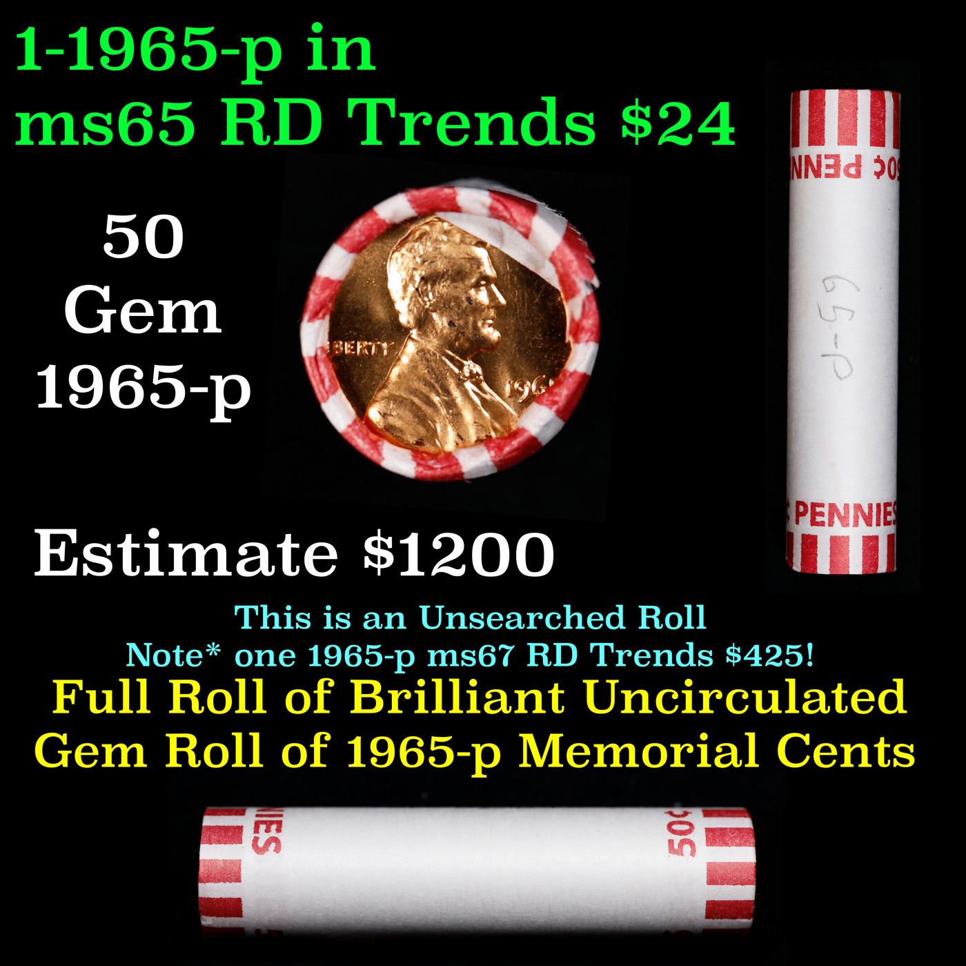 Shotgun Lincoln 1c roll, 1965-p 50 pcs Bank Wrapper.. A terrific Shotgun roll of Lincoln cents. Most if not all coin should be cherry red.