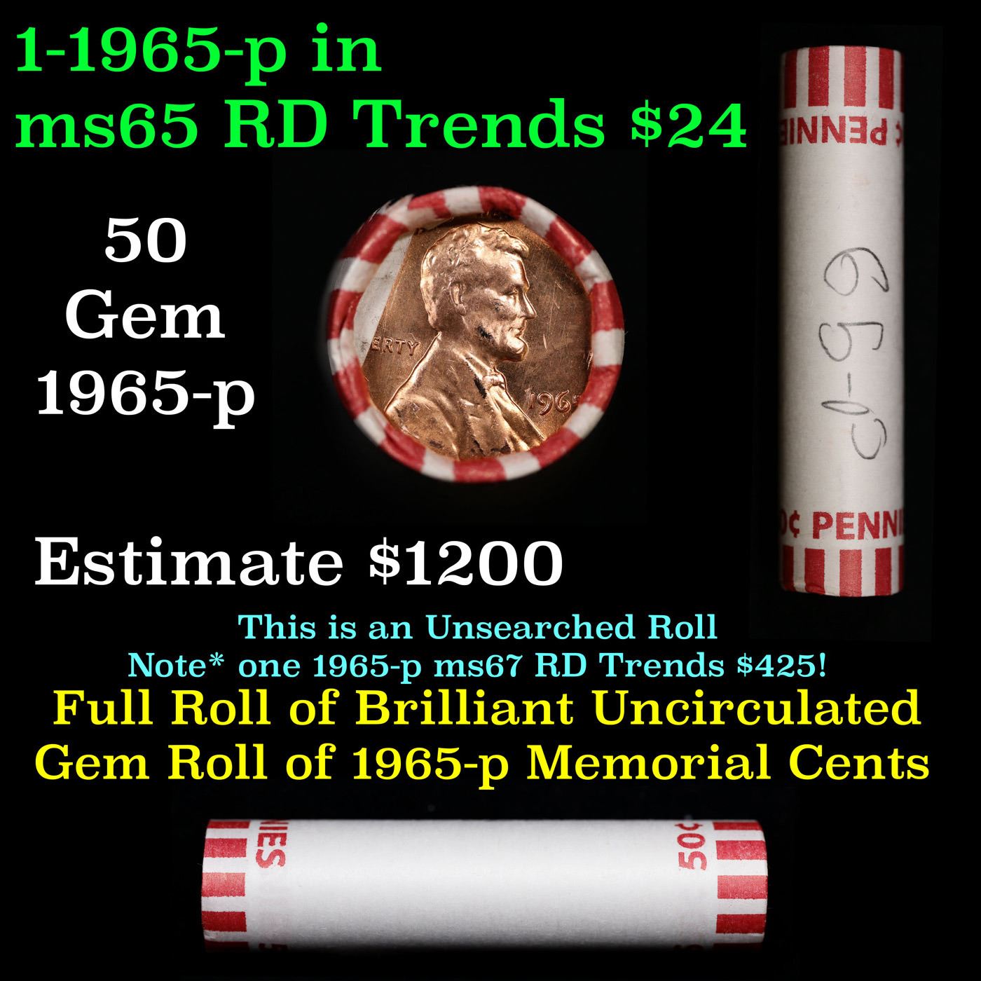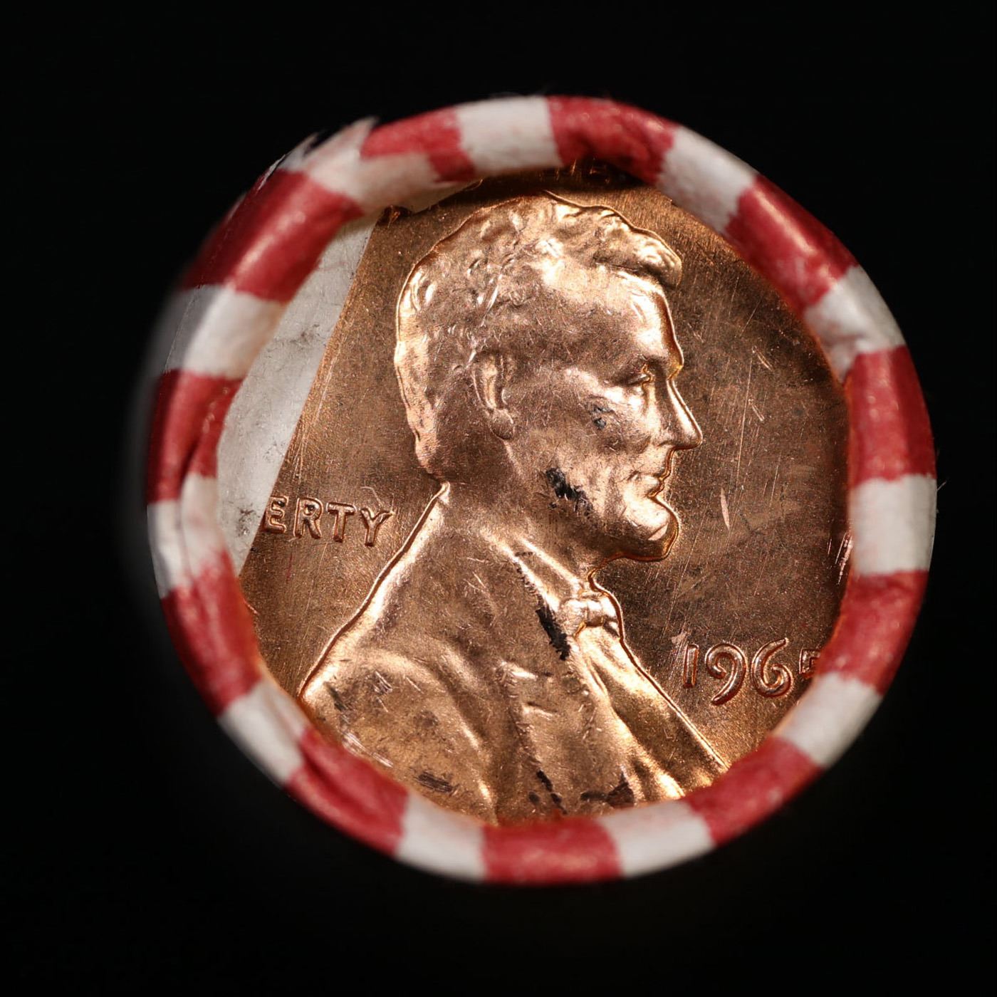 Shotgun Lincoln 1c roll, 1965-p 50 pcs Bank Wrapper.. A terrific Shotgun roll of Lincoln cents. Most if not all coin should be cherry red.
