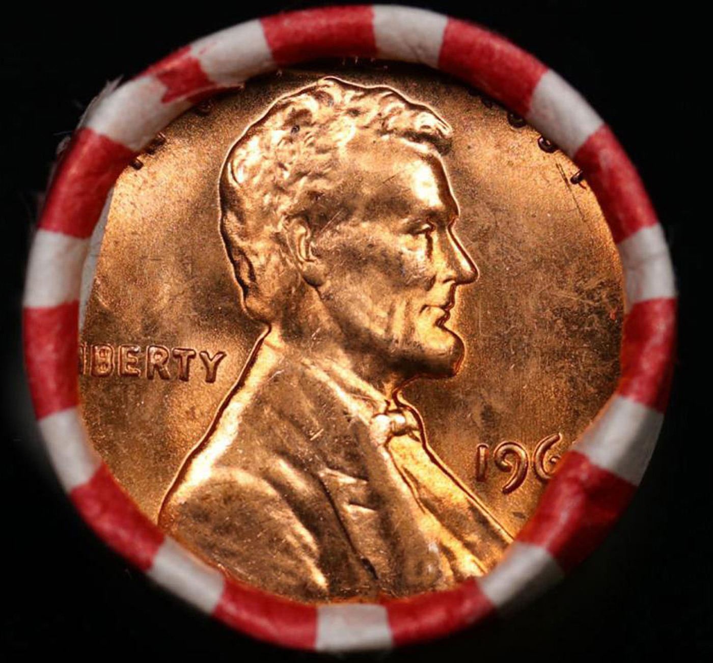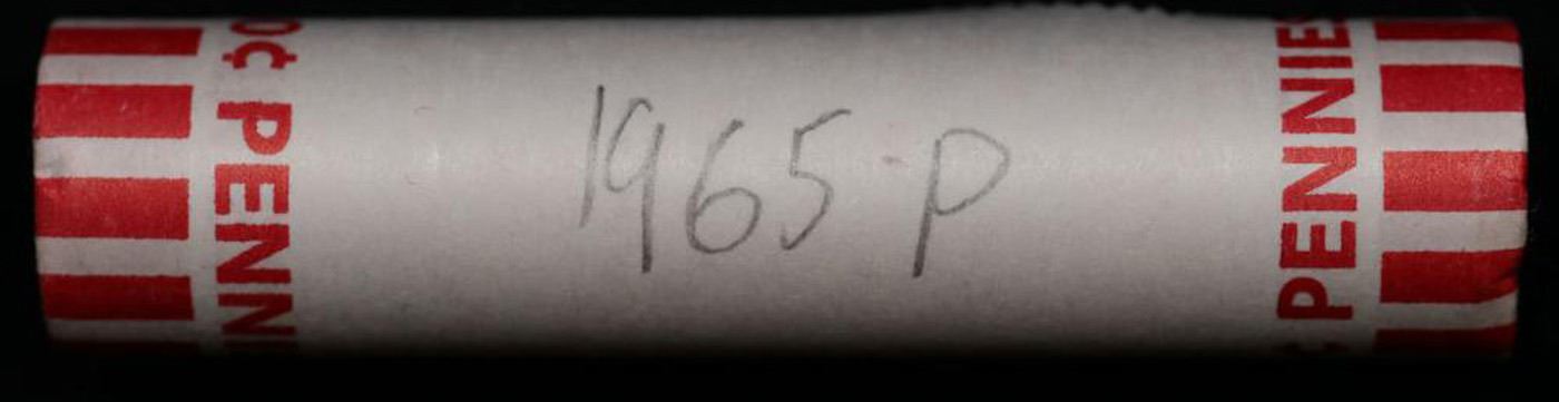 Shotgun Lincoln 1c roll, 1965-p 50 pcs Bank Wrapper.. A terrific Shotgun roll of Lincoln cents. Most if not all coin should be cherry red.