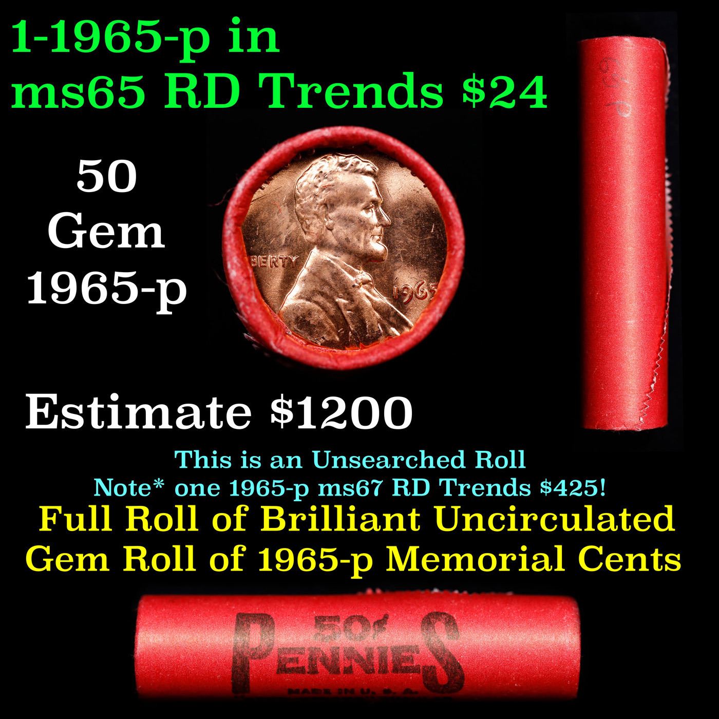 Shotgun Lincoln 1c roll, 1965-p 50 pcs Steel-Strong Wrapper.. A terrific Shotgun roll of Lincoln cents. Most if not all coin should be cherry red.
