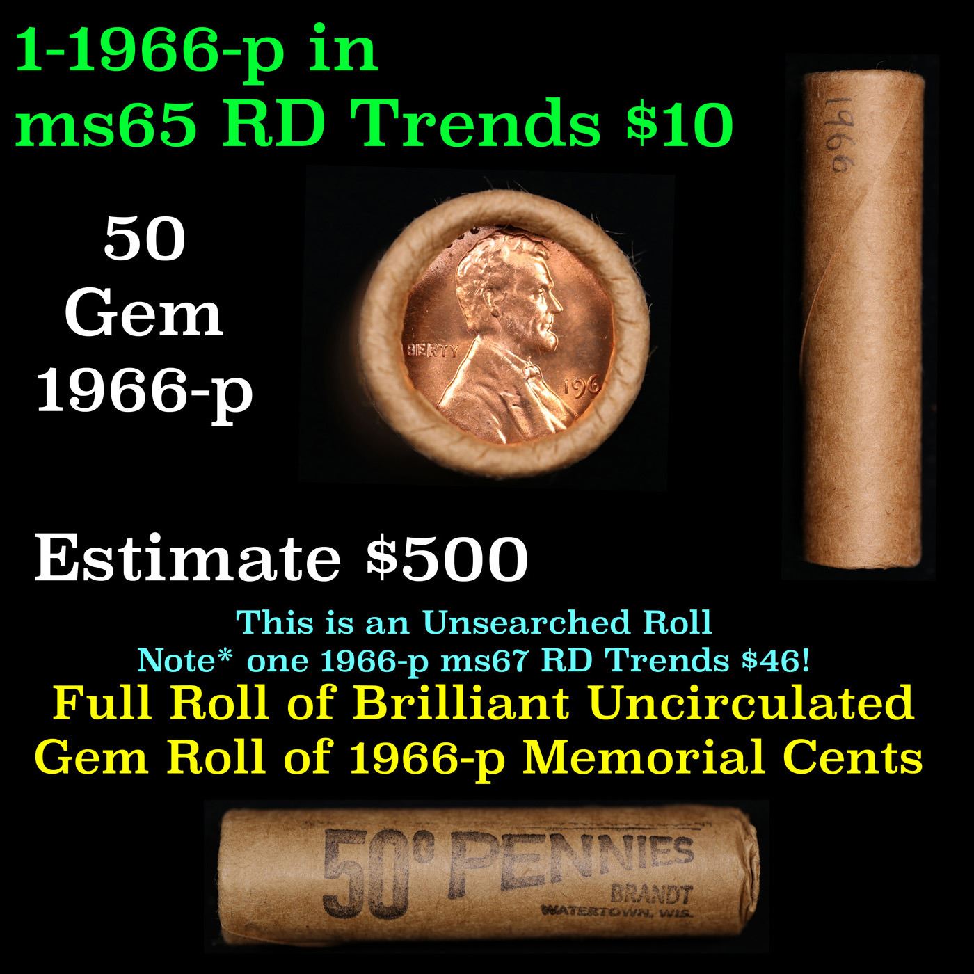 Shotgun Lincoln 1c roll, 1966-P 50 pcs Brandt Wrapper.. A terrific Shotgun roll of Lincoln cents. Most if not all coin should be cherry red.