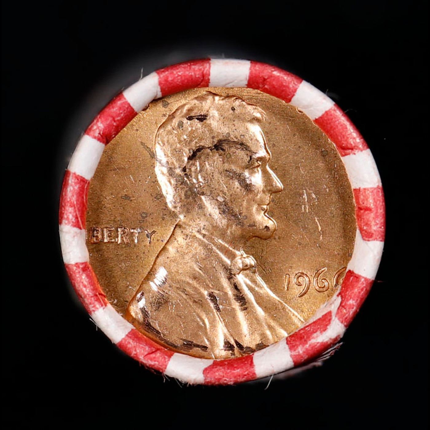 Shotgun Lincoln 1c roll, 1966-p 50 pcs Bank Wrapper.. A terrific Shotgun roll of Lincoln cents. Most if not all coin should be cherry red.