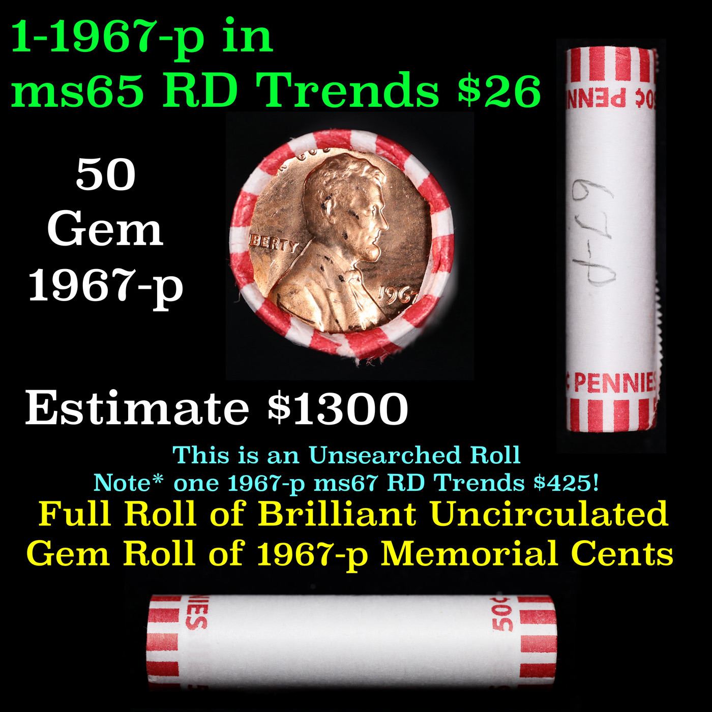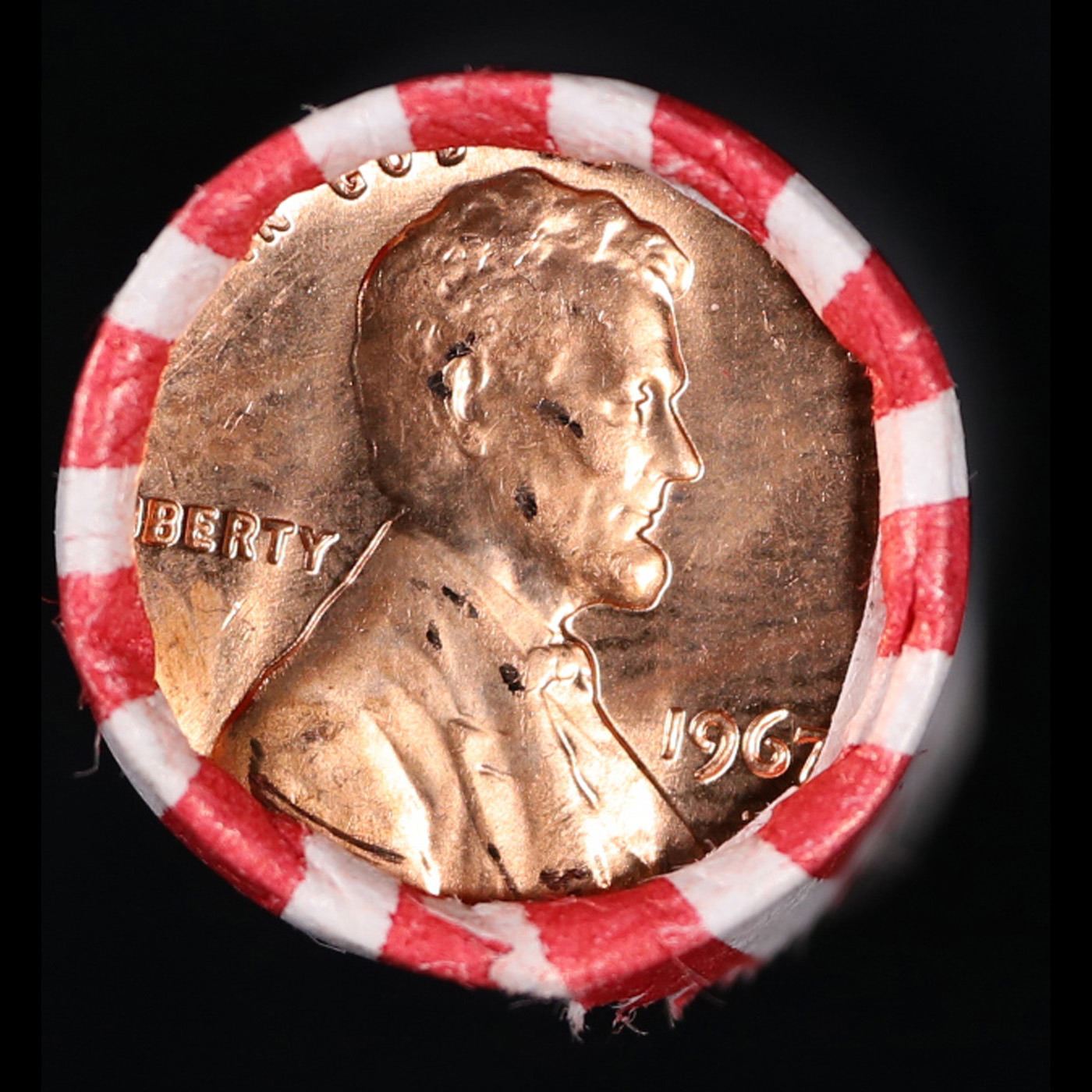 Shotgun Lincoln 1c roll, 1967-p 50 pcs Bank Wrapper.. A terrific Shotgun roll of Lincoln cents. Most if not all coin should be cherry red.