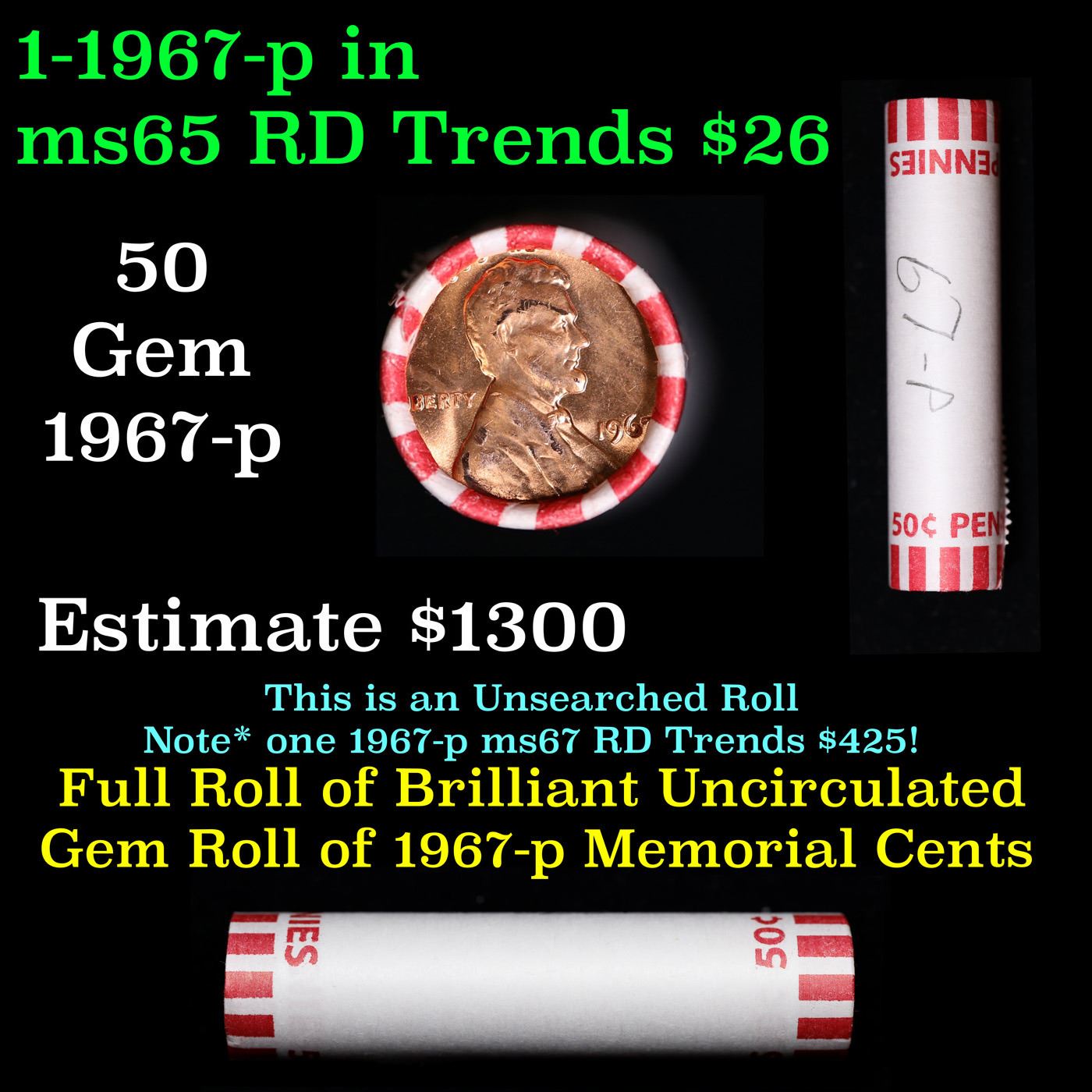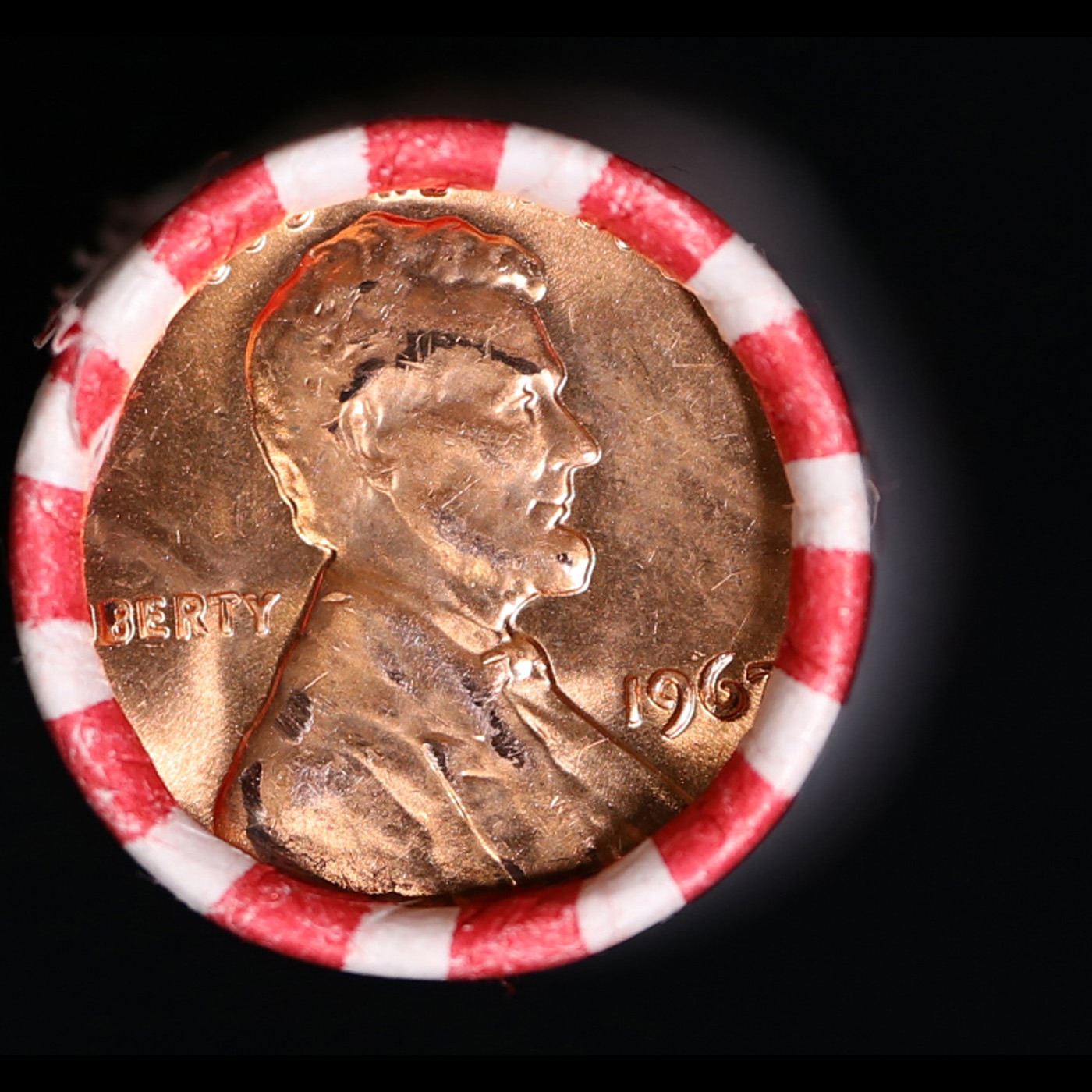 Shotgun Lincoln 1c roll, 1967-p 50 pcs Bank Wrapper.. A terrific Shotgun roll of Lincoln cents. Most if not all coin should be cherry red.