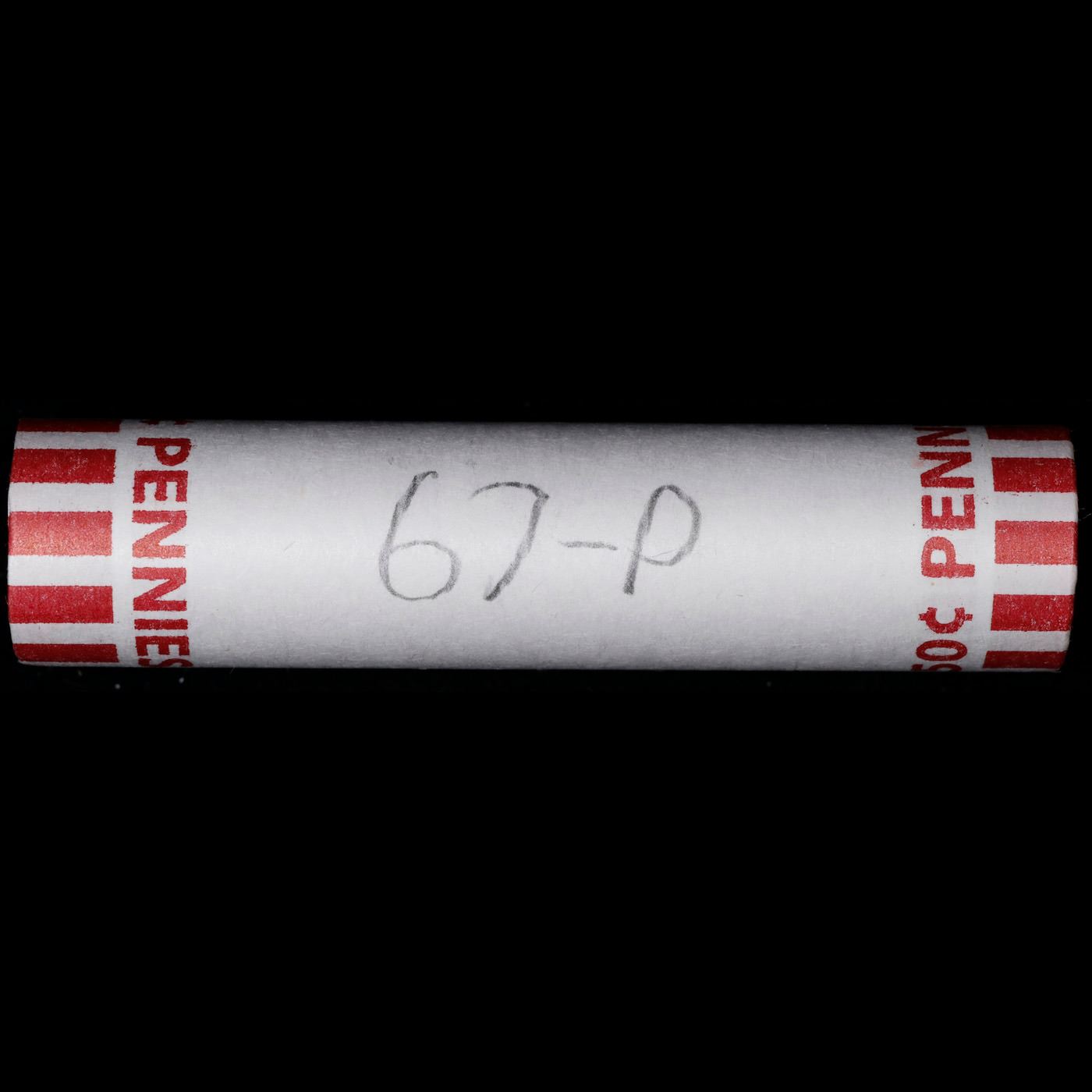 Shotgun Lincoln 1c roll, 1967-p 50 pcs Bank Wrapper.. A terrific Shotgun roll of Lincoln cents. Most if not all coin should be cherry red.