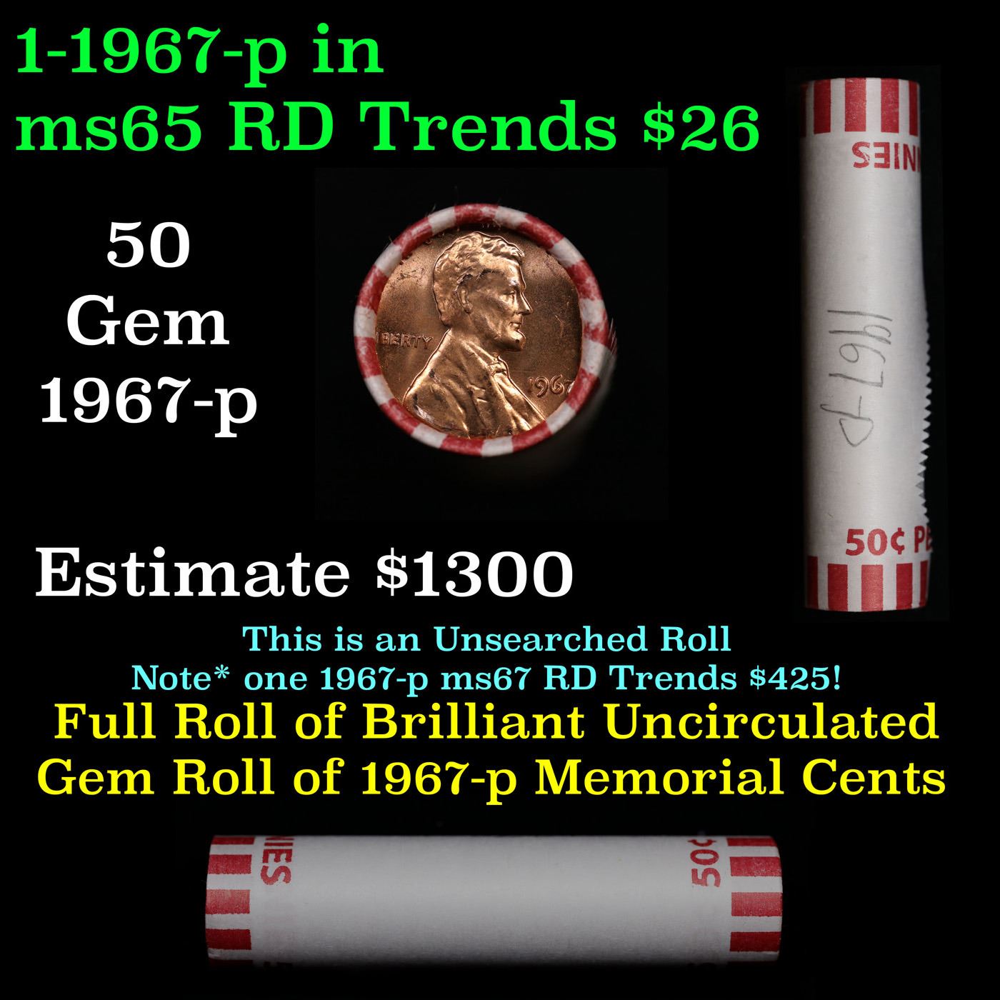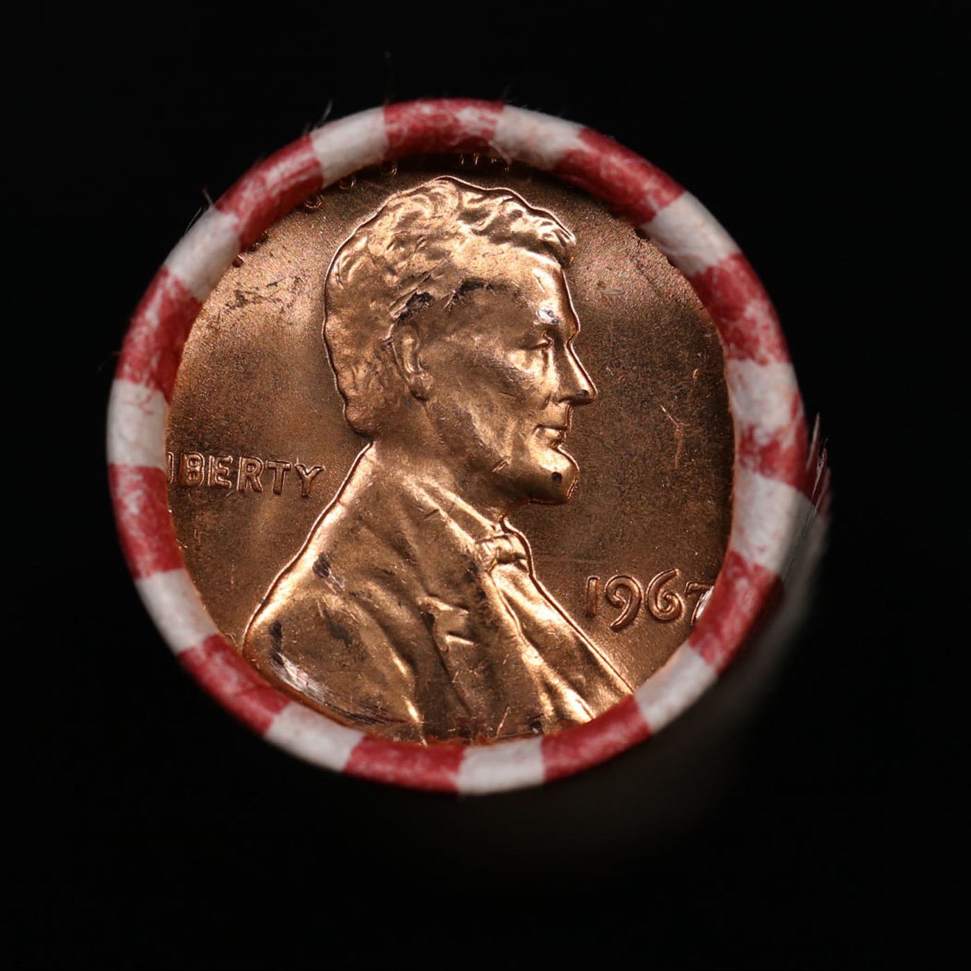 Shotgun Lincoln 1c roll, 1967-p 50 pcs Bank Wrapper.. A terrific Shotgun roll of Lincoln cents. Most if not all coin should be cherry red.