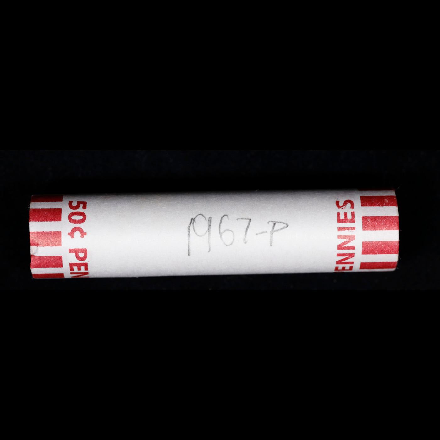 Shotgun Lincoln 1c roll, 1967-p 50 pcs Bank Wrapper.. A terrific Shotgun roll of Lincoln cents. Most if not all coin should be cherry red.