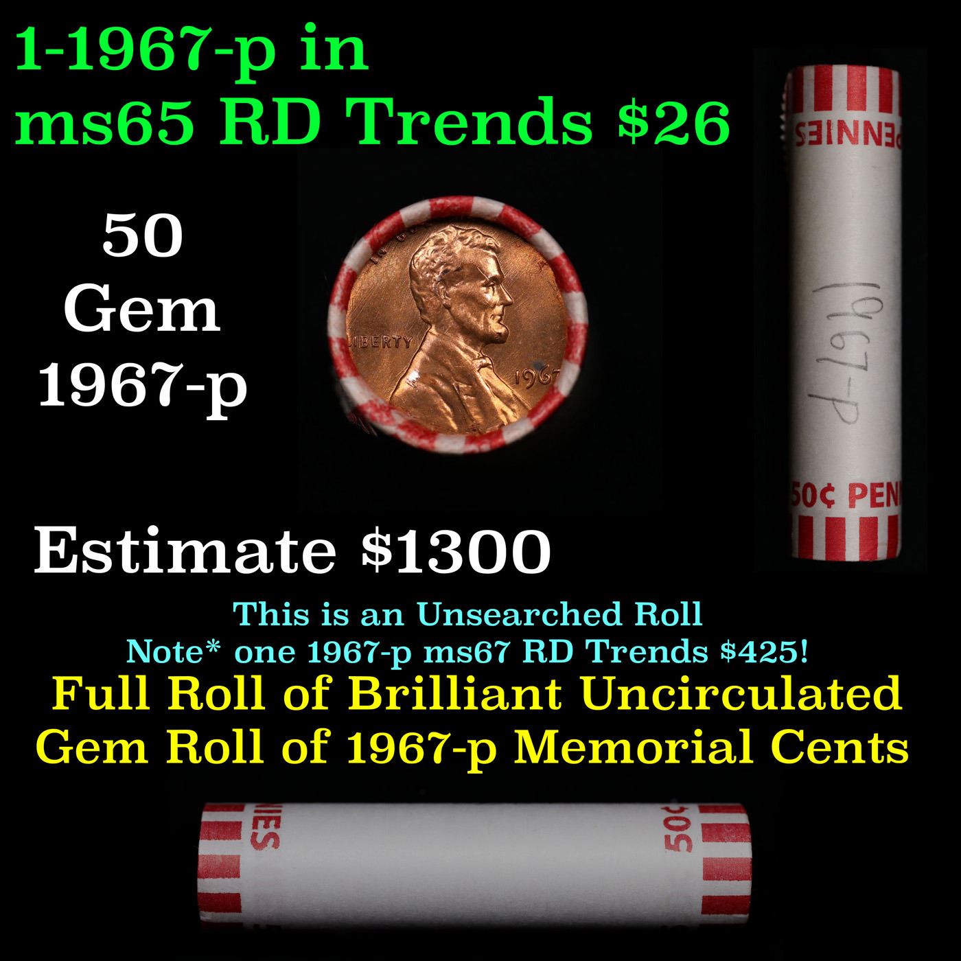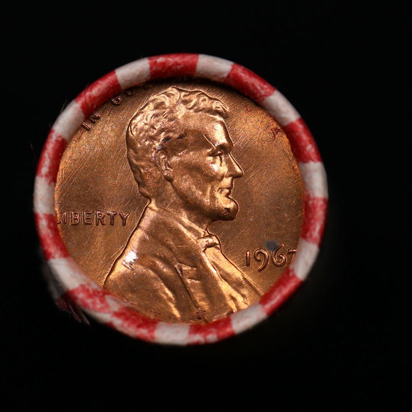 Shotgun Lincoln 1c roll, 1967-p 50 pcs Bank Wrapper.. A terrific Shotgun roll of Lincoln cents. Most if not all coin should be cherry red.
