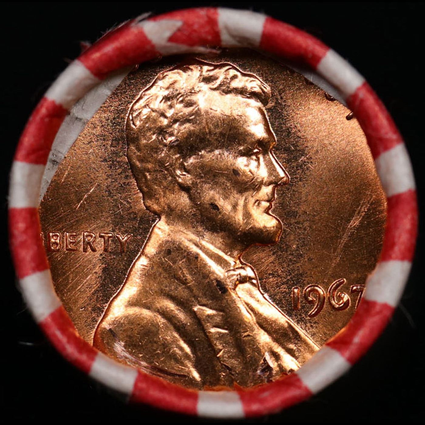 Shotgun Lincoln 1c roll, 1967-p 50 pcs Bank Wrapper.. A terrific Shotgun roll of Lincoln cents. Most if not all coin should be cherry red.