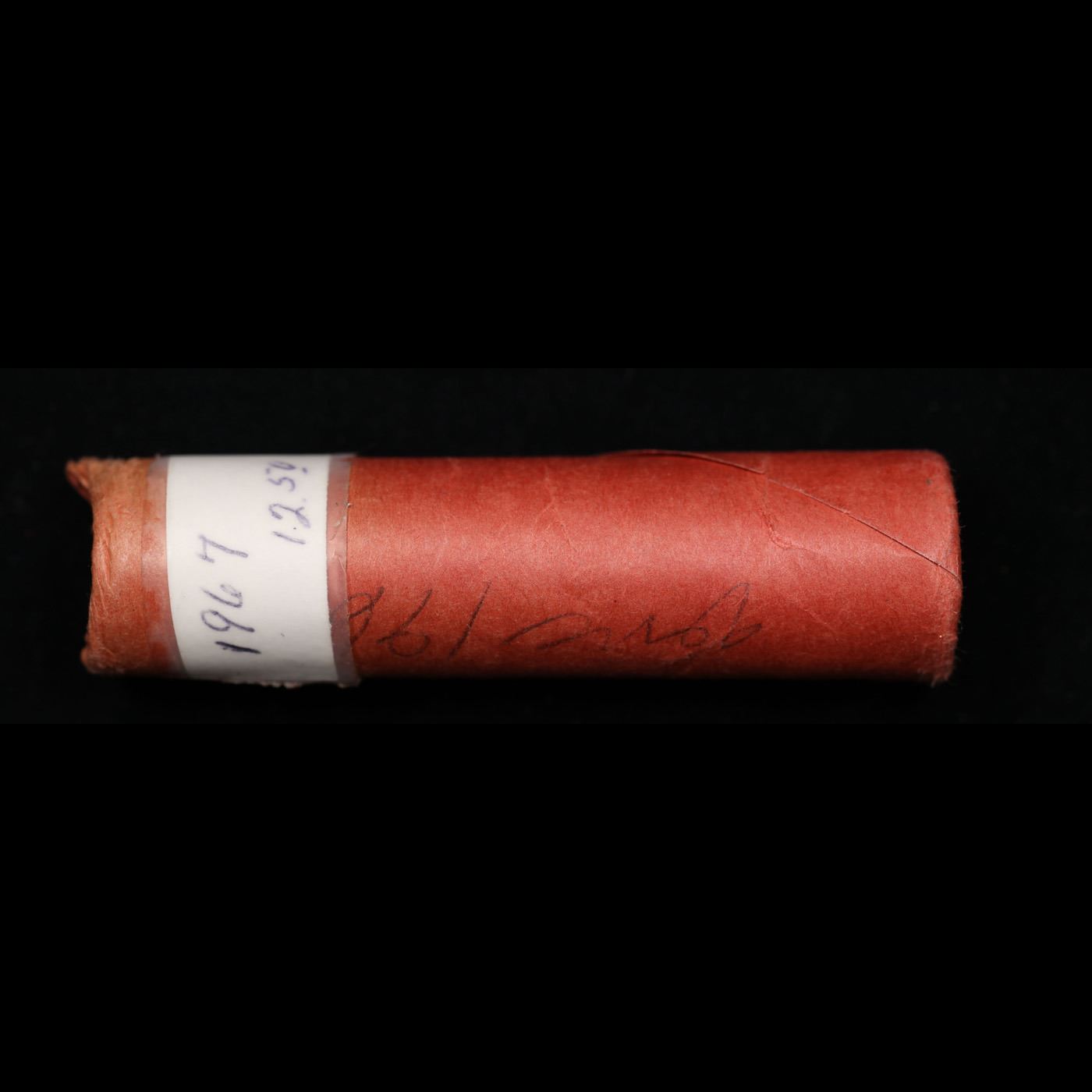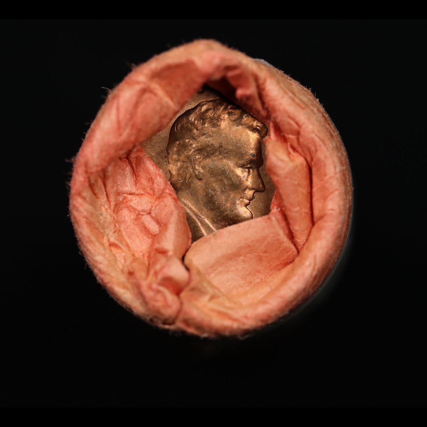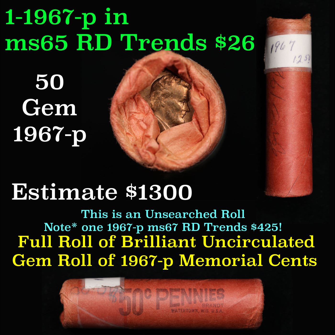 Shotgun Lincoln 1c roll, 1967-p 50 pcs Brandt Wrapper.. A terrific Shotgun roll of Lincoln cents. Most if not all coin should be cherry red.