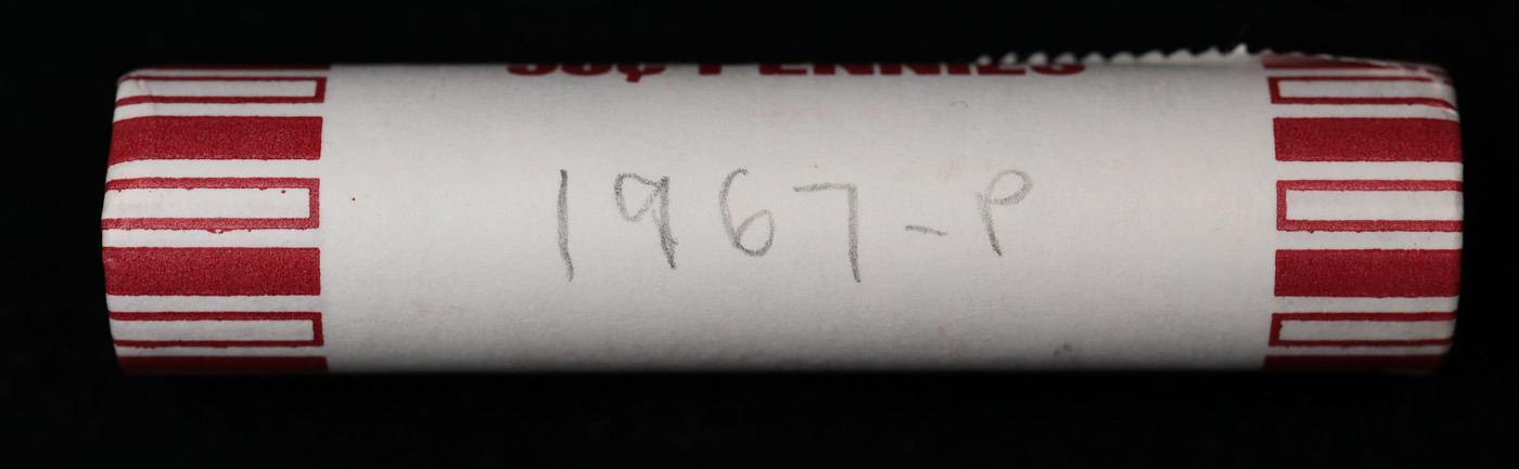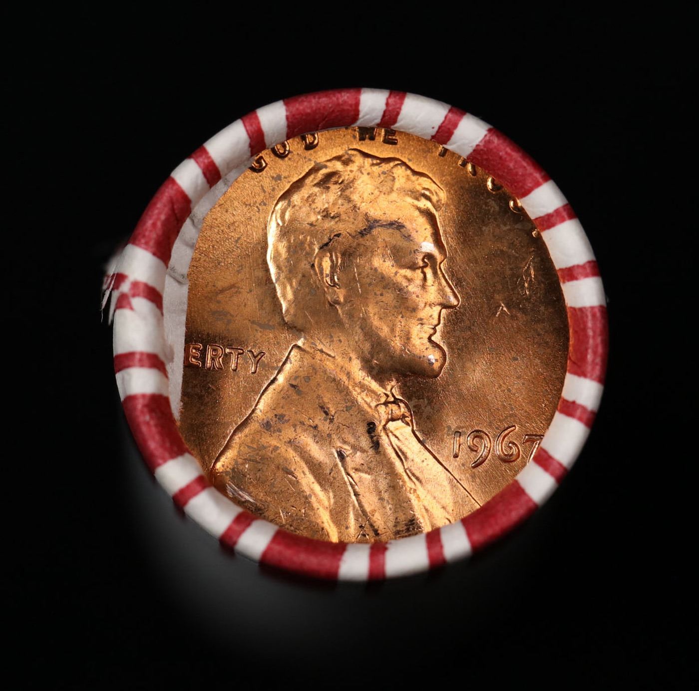 Shotgun Lincoln 1c roll, 1967-p 50 pcs Steel-Strong Wrapper.. A terrific Shotgun roll of Lincoln cents. Most if not all coin should be cherry red.