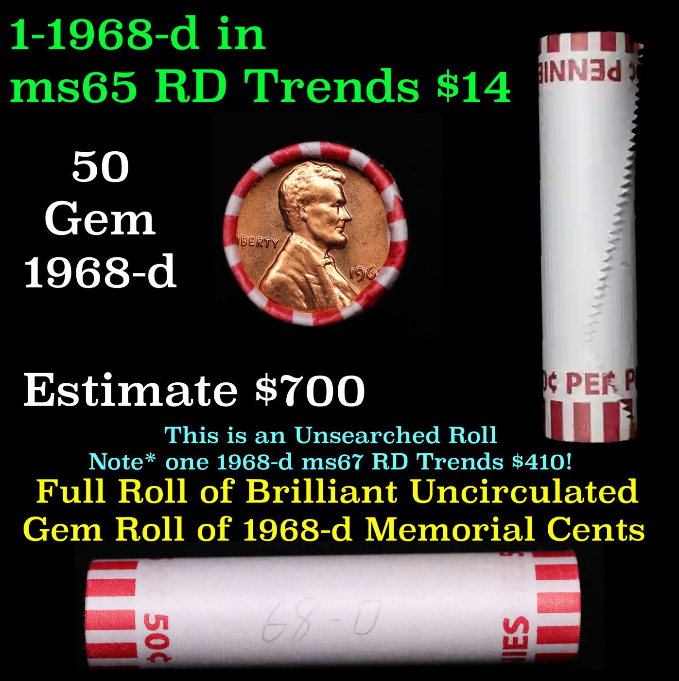 Shotgun Lincoln 1c roll, 1968-d 50 pcs Bank Wrapper.. A terrific Shotgun roll of Lincoln cents. Most if not all coin should be cherry red.